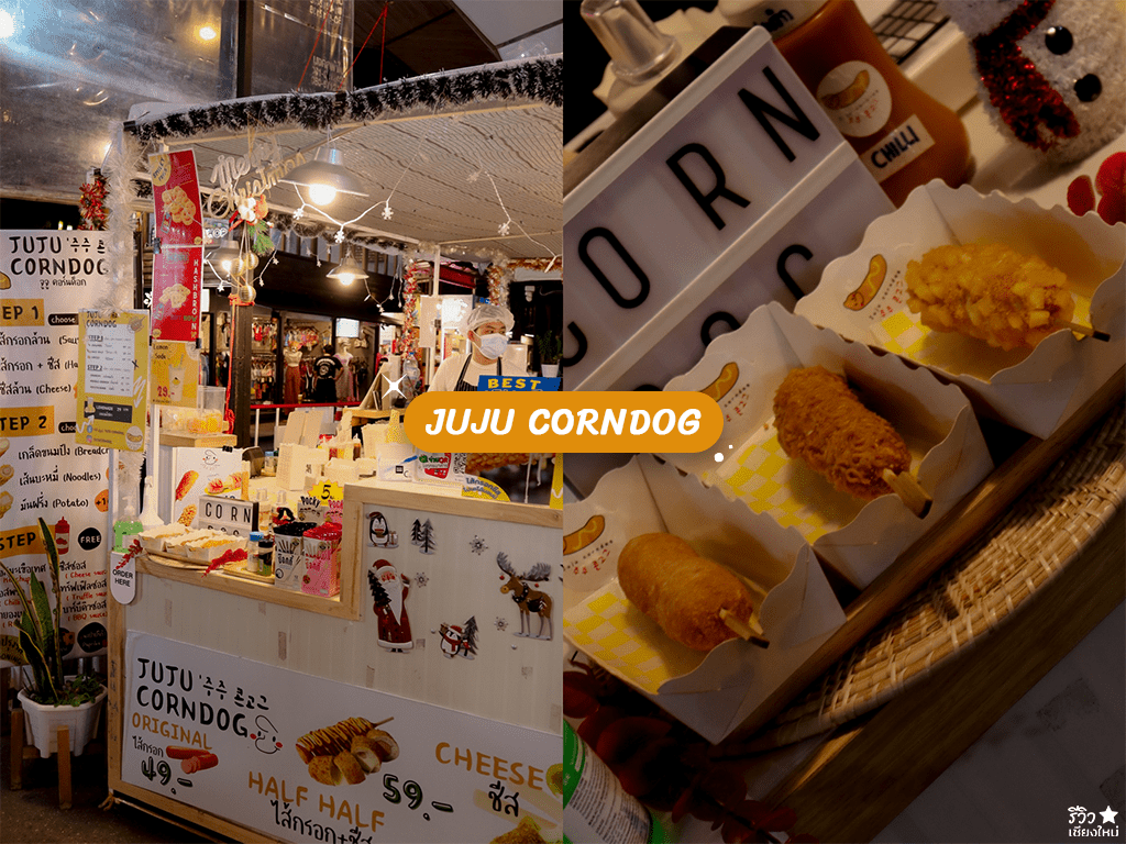 ร้านคอร์นดอก ตั้งอยู่โซนซุ้มขายอาหาร มีให้เลือกสามอย่างคือ ไส้กรอกล้วน ไส้กรอกชีส และชีสล้วน แถมยังมีให้เลือกว่าจะห่อด้วยเกล็ดขนมปัง บะหมี่ หรือมันฝรั่งด้วย ส่วนเมนูที่ห้ามพลาดขอ HALF BOMB ชีสเยิ้มๆ เต็มคำเลย!!