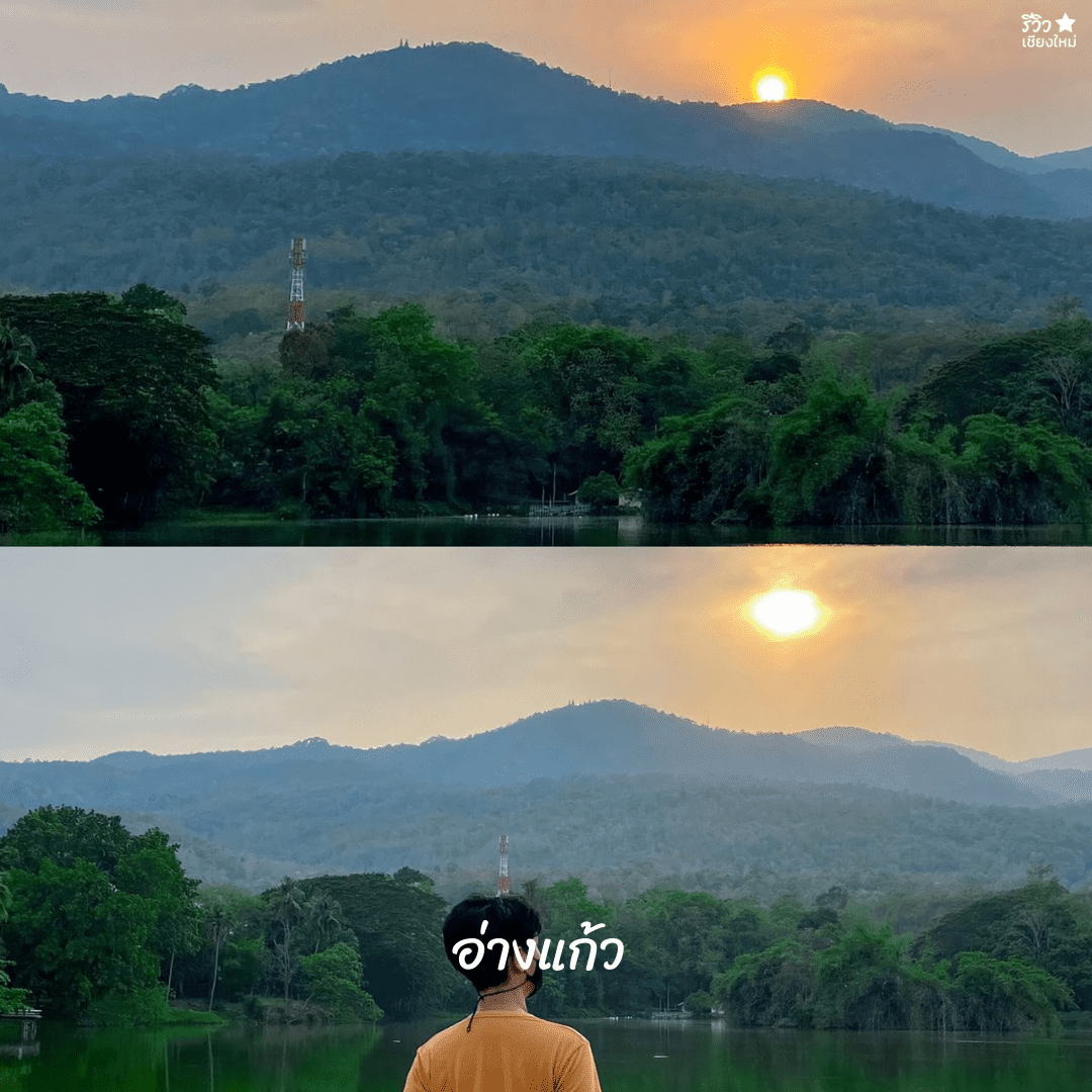 ทุกสิ่งทุกอย่างอยู่ที่อ่างแก้ว ไม่ว่าจะความรู้สึกไหนๆ ก็มาเที่ยวได้ และการชมวิวพระอาทิตย์ตกก็สวยไม่แพ้ที่อื่นๆ พระอาทิตย์ตกหลังวิวดอยสุเทพ กับผืนน้ำของอ่างแก้ว ให้อารมณ์ชิลล์