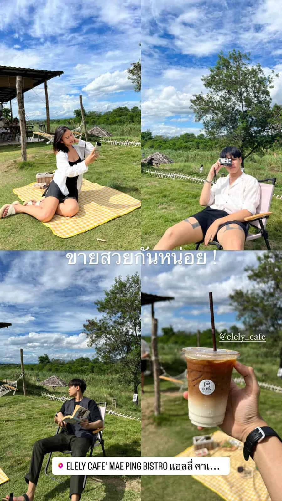 แถมจ้า!! แอดได้แวะคาเฟ่ระหว่างขากลับตัวเมือง ชื่อว่า Elely Cafe’ Mae Ping Bistro คาเฟ่เล็กๆ สำหรับคนที่รักสัตว์ เป็นคาเฟ่แบบ Open Air อากาศวันนี้กำลังดีเลย มีมุมถ่ายรูปให้เลือกแช๊ะหลากหลายมุมมาก มุมเขียวๆเยอะเลย เรียกว่าเป็นคาเฟ่ใกล้ธรรมชาติอีกที่นึง แถมมีน้องหมากับน้องช้างก็เฟรนด์ลี่น่ารักสุดๆ (สำหรับน้องช้างสามารถถ่ายรูปและให้อาหารได้ช่วงเวลา 11:00 – 17:00 น.) ขากลับถ้าใครยังมีเวลาลองแวะดูได้น้า