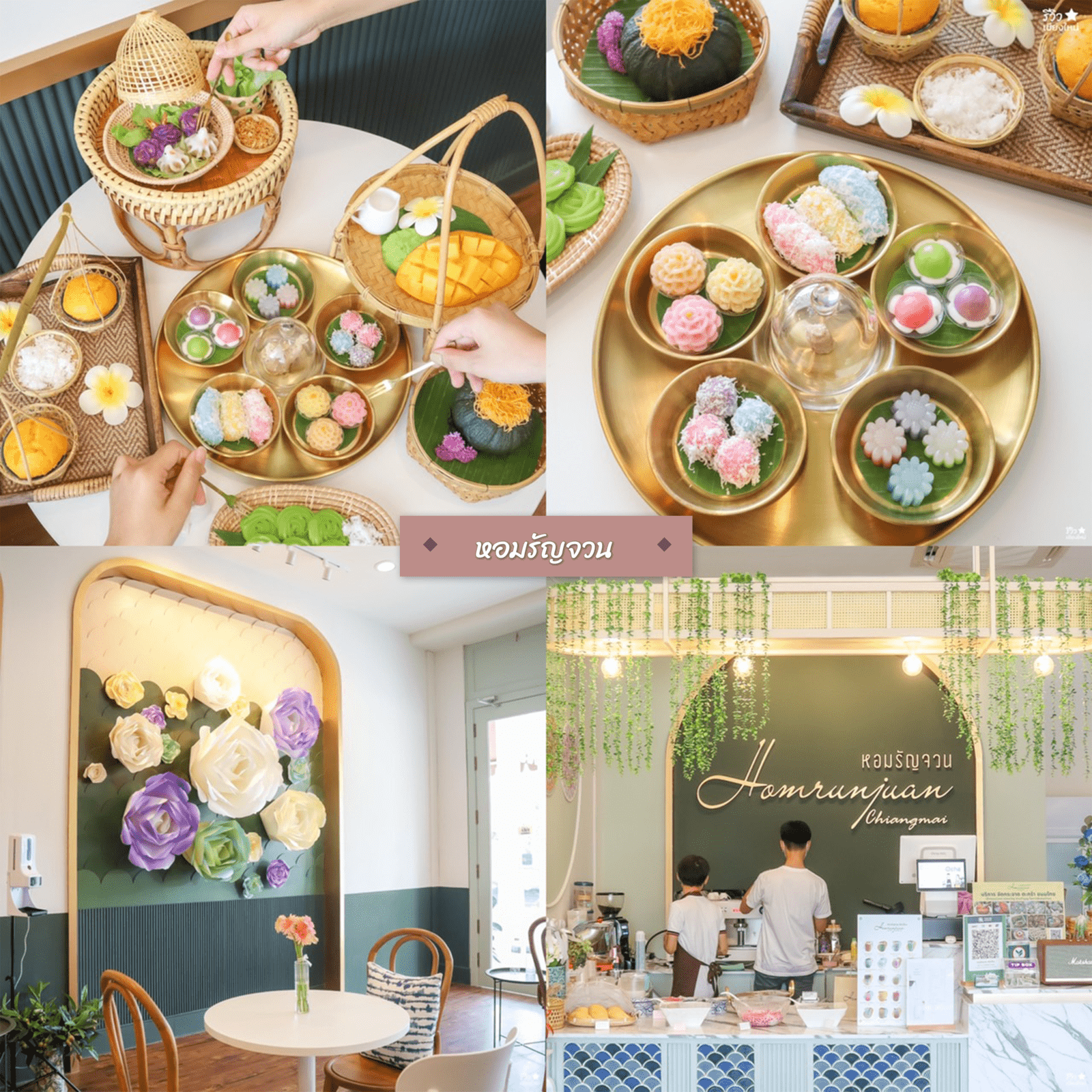 ที่หอมรัญจวน บอกได้เลยว่าขนมไทยเขานั้นมีกลิ่นที่หอมรัญจวนมากเลย มีการปรับตัวขนมให้เข้ากับยุคกับสมัย แต่ก็ยังคงความรู้สึกและความหอมของความเป็นไทยไว้ รสชาติของขนมแต่ละเมนูก็คือหวานน้อย คือกำลังดี เราได้รับความรู้สึกที่ดีทั้งกลิ่นหอม ความละมุนของขนม และรสหวานที่กำลังพอดี ลงตัวมาก