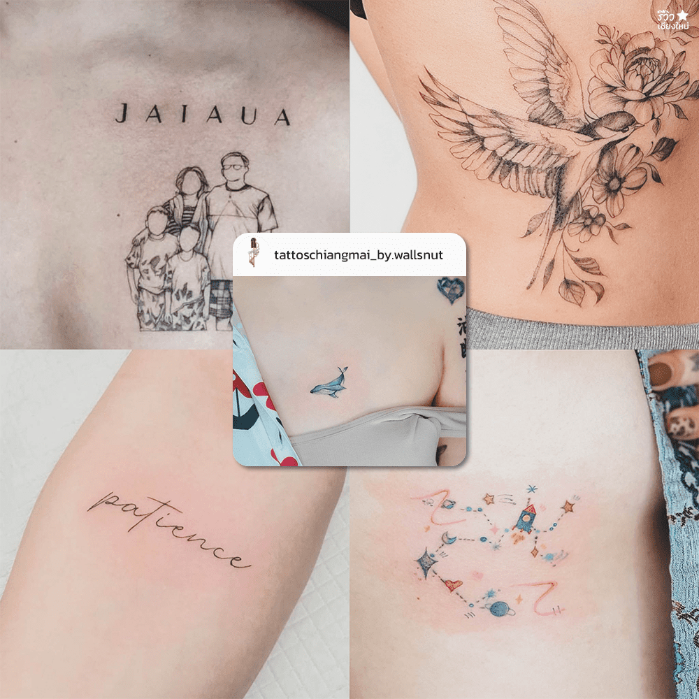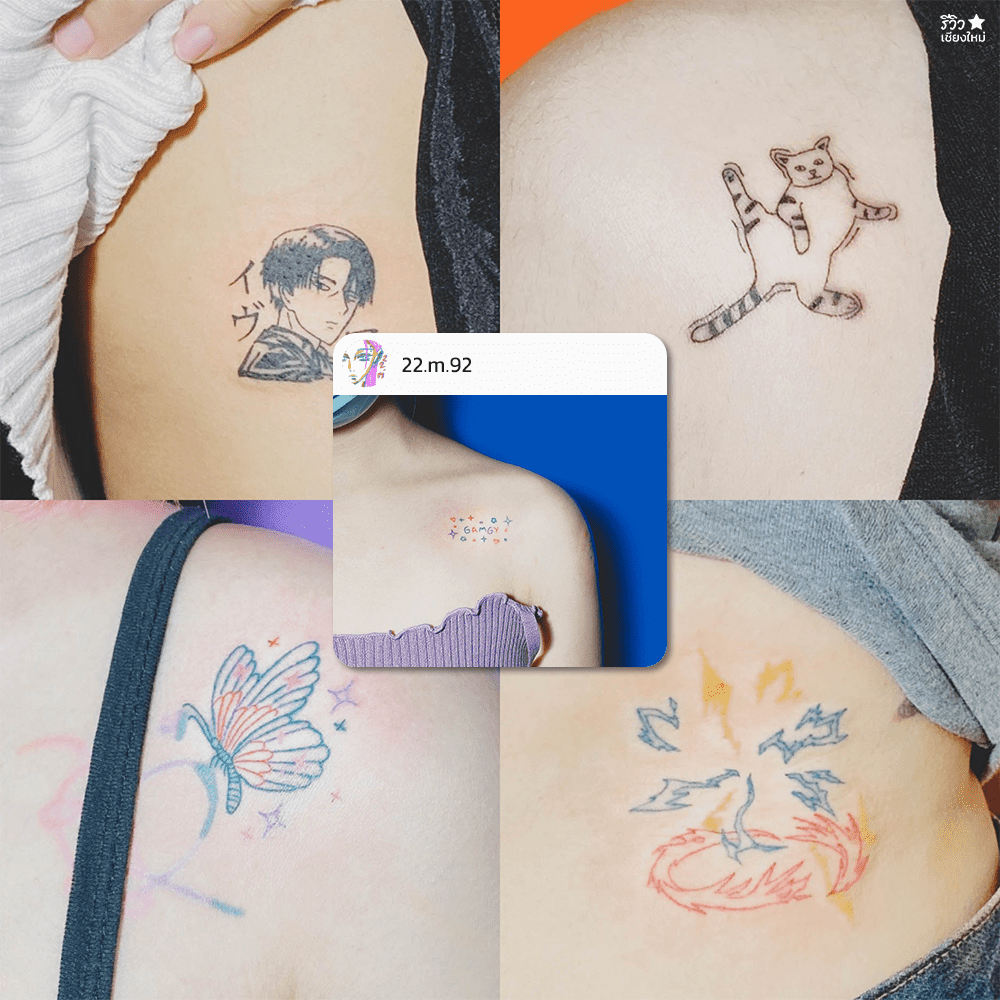 ที่นี่จะใช้วิธีสักแบบเครื่อง มีทั้งสีและขาวดำ ส่วนลายเส้นจะออกแนวอนิเมะๆ น่าร้ากกก หน้าร้านอยู่ในโครงการ Up Avenue ติดกับหอพัก Uniloft (หลังมช.) ส่วนราคาจะคิดตาม ลาย / สี / ขนาด ใครชอบอนิเมะเรื่องไหนหรือมีตัวละครในใจ ก็ลองทักไปจองได้เลยยน้า ทางร้านไม่รับ Walk – in เน้ออ