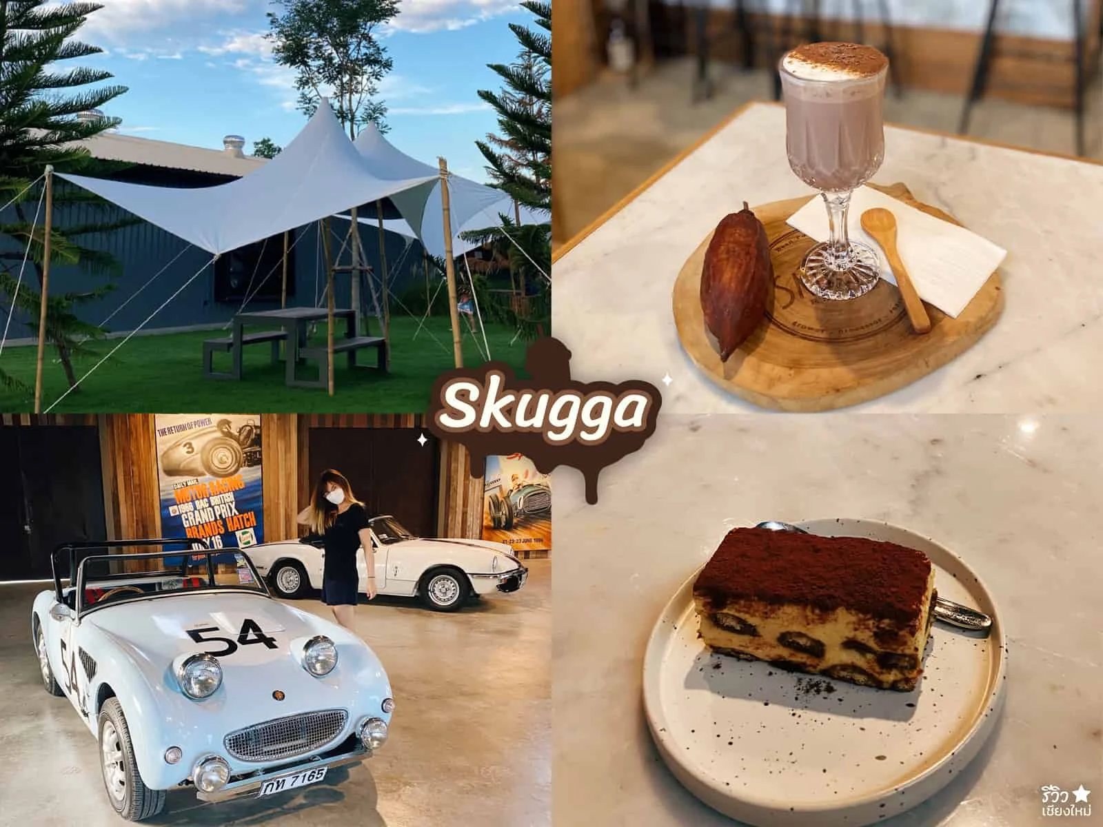 คาเฟ่สาย Chocolate ย่านแม่ออนขับออกมานอกเมืองสักหน่อยน้า เมนู chocolate ของที่นี่จะมีหลายระดับความเข้มเลยน้า ตั้งแต่ Wake Me Up Baby 78% / Rush Hour 66% / Smooth As Silk 58% / Don’t Tell My Mom 44% ตามรูปที่แอดสั่งมาจะเป็นเมนู Smooth As Silk 58% สัมผัสนุ่ม ดื่มง่าย สมูทตามชื่อเลยจ้าววว ส่วนอีกเมนูซึ่งเป็นเมนูขนมคือ Tiramisu แอดชอบ คือกินขนมคู่กันกับเครื่องดื่มยิ่งเริ่ด! พอทานเสร็จก็แวะไปถ่ายรูปที่โรงรถสักหน่อย ที่นี่เค้ามีรถสวยๆ เพียบเลยน้า