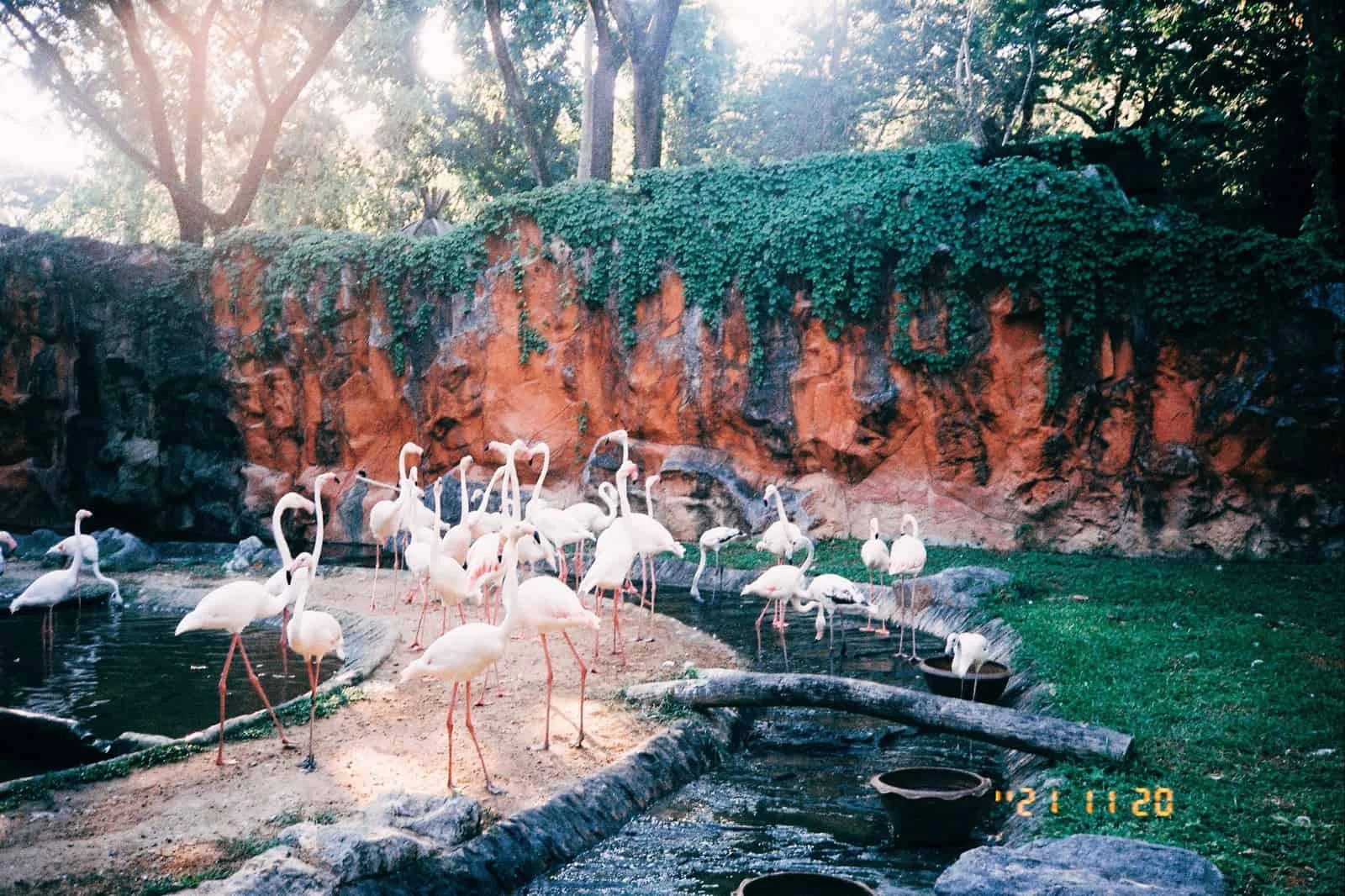 ฟามิงโก้ที่ร้องเสียงดังลั่นทั้งฝูงเพราะมีความสุขกับการกินอาหาร ครูฝึกน้องบอกว่าตอนนี้กำลังฝึกให้น้องกินในที่ของตัวเองอยู่
