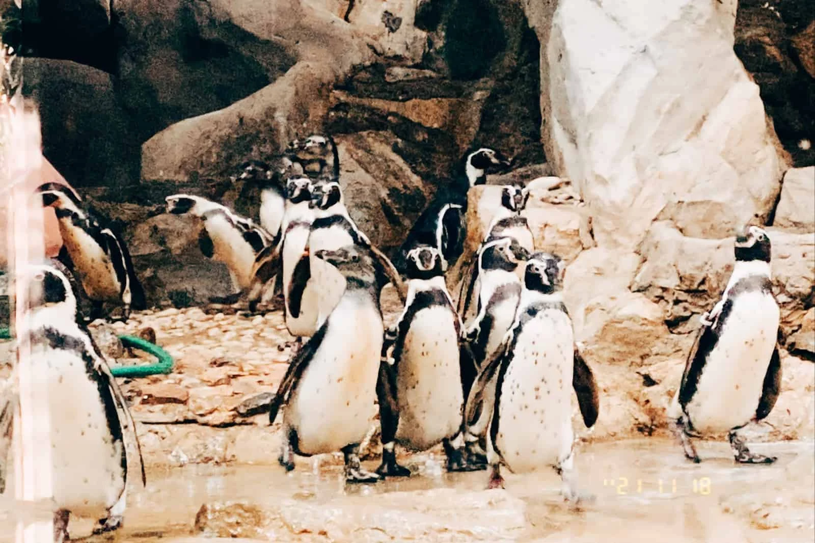 เจ้าเพนกวินยืนเรียงกันเป็นขบวน แถมยังดำนำโชว์แอดด้วย ขี้เล่นสุด ๆ ตอนแอดไปเขากำลังจะให้อาหารน้องพอดี น้องก็เดินเตาะแตะตามกันเป็นฝูง