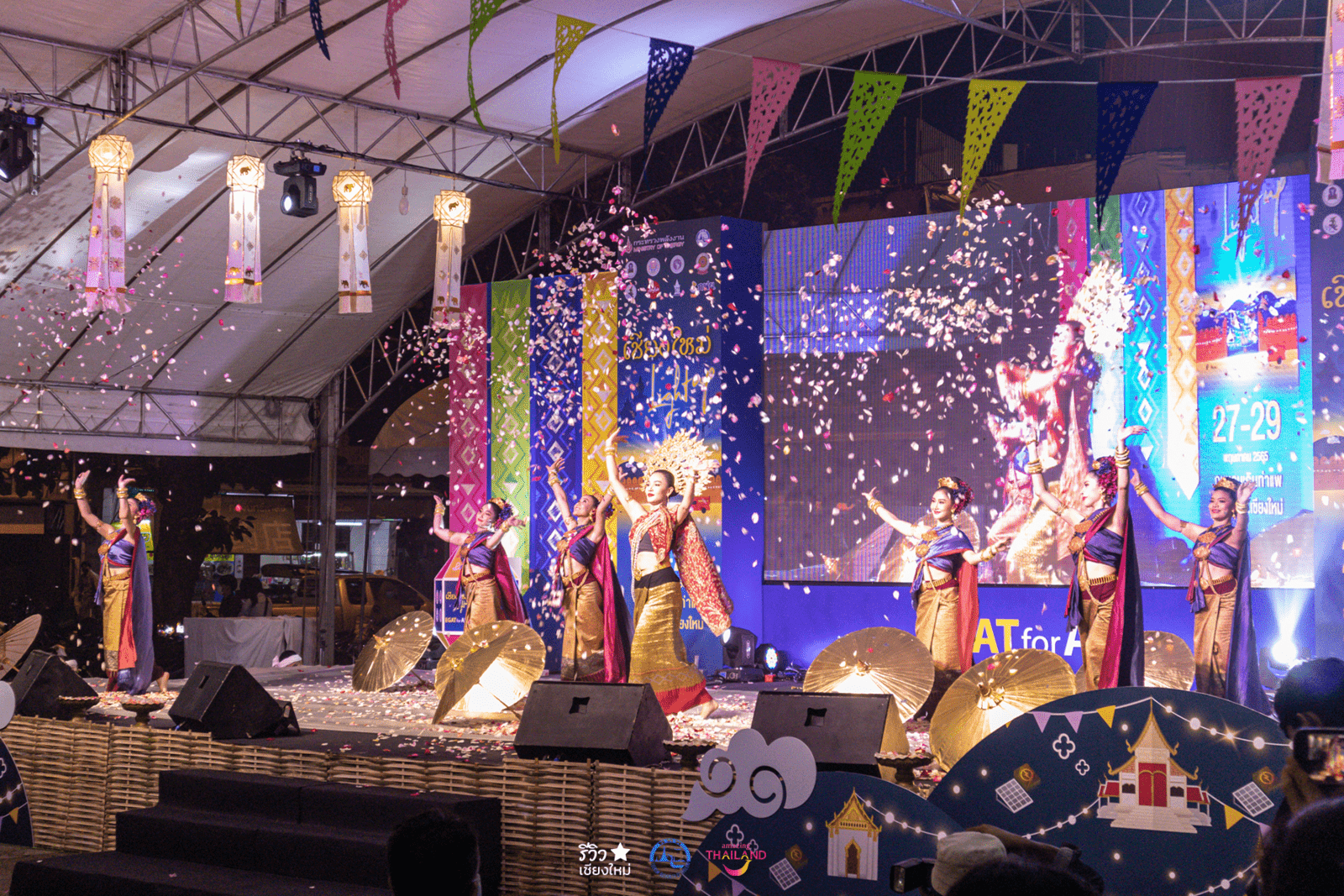 ชมการแสดงเปิดตัวสุดอลังการในแบบฉบับล้านนา และยังมีมินิคอนเสิร์ตจากวงมีนและวงเขียนไขวานิชขับกล่อมเสียงเพลงภายในงาน มีซุ้มขายของที่ระลึกทั้งเสื้อผ้าและของกินมาวางจัดจำหน่ายให้เราได้เลือกซื้อ เยอะแยะเต็มไปหมด พร้อมทั้งกิจกรรมถ่ายรูปและเสี่ยงเซียมซีวัดดวงกันไปเลย