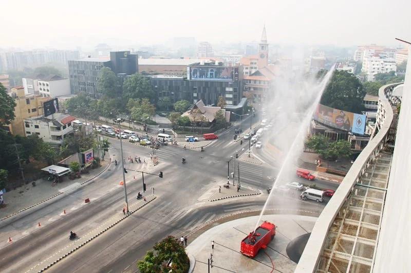 เมื่อวันที่ 16 มีนาคม ศูนย์การค้า เมญ่า ไลฟ์สไตล์ ช้อปปิ้ง เซ็นเตอร์ ร่วมกับเทศบาลช้างเผือก จังหวัดเชียงใหม่ จัดกิจกรรมฉีดน้ำลดฝุ่นละอองบรรเทาสถานการณ์หมอกควัน นำโดย คุณคเชน เจียกขจร นายกเทศมนตรีเทศบาลตำบลช้างเผือก และ คุณศรายุทธ ทองร่มโพธิ์ ผู้ช่วยผู้จัดการทั่วไปศูนย์การค้า เมญ่า ไลฟ์สไตล์ ช้อปปิ้ง เซ็นเตอร์ พร้อมหน่วยอาสาสมัครและพนักงานจากศูนย์การค้า เมญ่า ไลฟ์สไตล์ ช้อปปิ้ง เซ็นเตอร์ ได้ตระหนักถึงปัญหาค่าฝุ่นละอองขนาดเล็กเพิ่มขึ้นสูงเกินระดับมาตรฐานเป็นระยะเวลาติดต่อกันหลายวันและส่งผลกระทบต่อสุขภาพ จึงได้จัดกิจกรรมฉีดพ่นน้ำ 3,000 ลิตรลดฝุ่นละอองในอากาศ ที่บริเวณอาคารชั้น 6 ศูนย์การค้า เมญ่า ไลฟ์สไตล์ ช้อปปิ้ง เซ็นเตอร์ และบริเวณลานกิจกรรมหน้าศูนย์การค้า เมญ่า ไลฟ์สไตล์ ช้อปปิ้ง เซ็นเตอร์ สี่แยกรินคำ-นิมมานเหมินทร์ โดยได้เริ่มทำการฉีดพ่นน้ำสร้างความชุ่มชื้นในอากาศตั้งแต่วันที่ 16 มีนาคม 2562 เป็นต้นไป จนกว่าสถานการณ์หมอกควันจะกลับเข้าสู่สภาวะปกติ ทั้งนี้ทางศูนย์การค้า เมญ่า ไลฟ์สไตล์ ช้อปปิ้ง เซ็นเตอร์ ยังได้มีกิจกรรมแจกหน้ากากอนามัย N95 ให้กับนักท่องเที่ยวที่มาใช้บริการในศูนย์การค้า ด้วยการลงทะเบียนแลกรับสิทธิ์ที่บริเวณเคาน์เตอร์ประชาสัมพันธ์ ชั้น G ศูนย์การค้า เมญ่า ไลฟ์สไตล์ ช้อปปิ้ง เซ็นเตอร์
