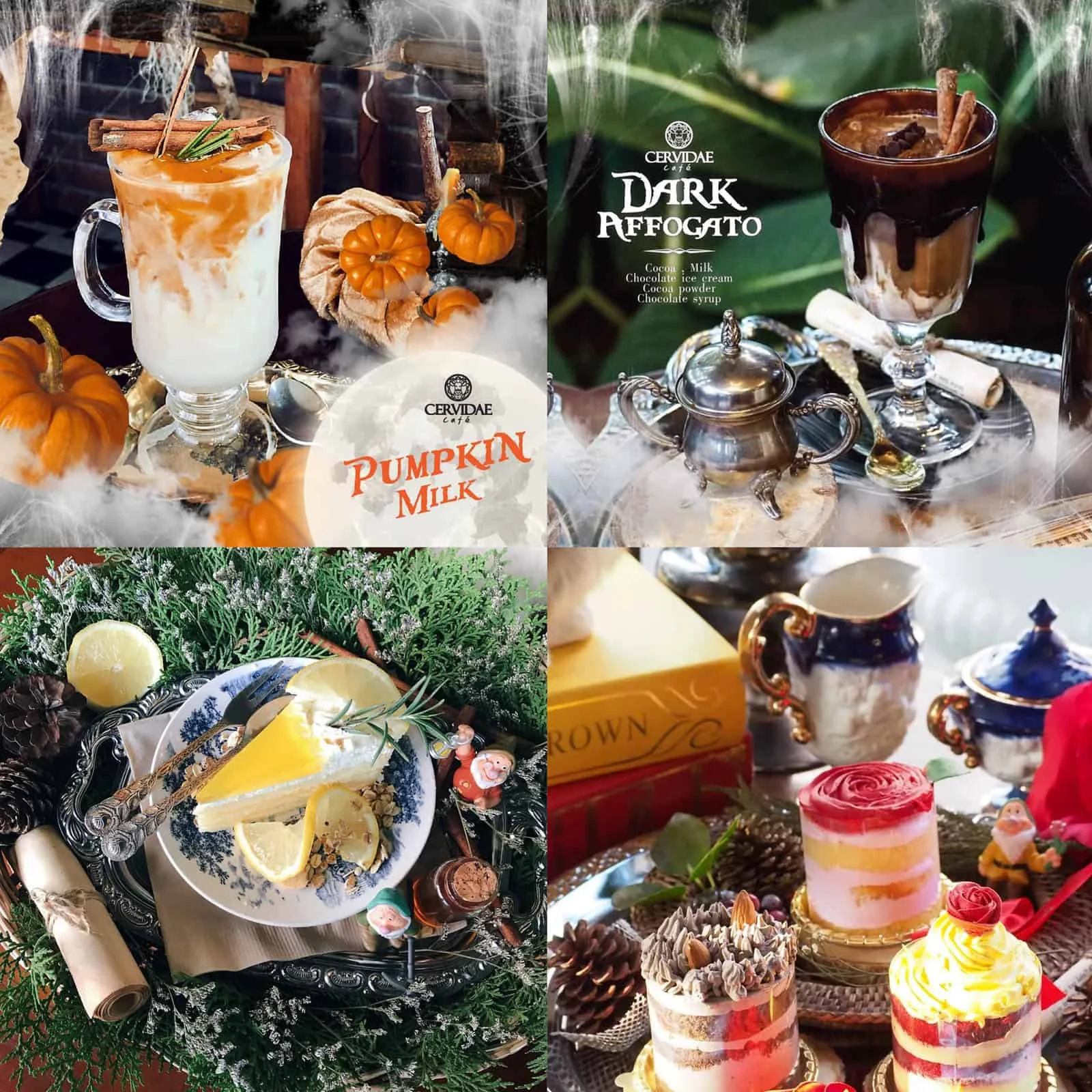 ร้านต่อมาคือ Cervidae cafe คาเฟ่เวทมนต์ที่จะทำให้รู้สึกเหมือนเข้าไปในโลกแห่งจินตนาการ มีมุมถ่ายรูปหลากหลาย ตกแต่งสไตล์ปราสาทเก่าแก่ในเทพนิยายแฟนตาซี ที่เต็มไปด้วยจินตนาการเหมือนหลุดเข้าไปโลกเวทมนต์ มีพร็อพให้ถ่ายรูปมากมาย ไม่ว่าจะเป็นเสื้อคลุม, ผ้าพันคอ,ไม้กายสิทธิ์ พร้อมกับเครื่องดื่มสดชื่น แต่งตัวแล้วถ่ายรูปแชะๆ แกล้งๆเป็นพ่อมดแม่มดอยู่เมืองนอก