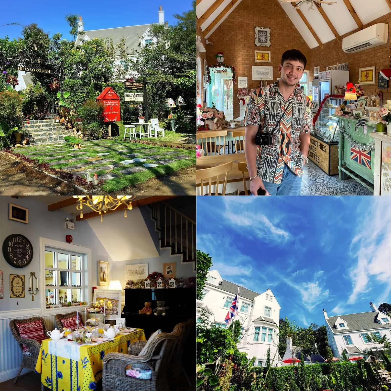 มากันต่อที่คาเฟ่ และ โรงแรมสถาปัตยกรรมสไตล์ English Country House มีบรรยากาศกลิ่นอายชนบทในอังกฤษ ที่ให้ความสงบอบอุ่นท่ามกลางหุบเขา รอบข้างประกอบไปด้วยการจัดตกแต่งให้เหมือนพักอยู่ที่อังกฤษเลยจ้า ตั้งอยู่กลางหุบเขา โอบล้อมด้วยธรรมชาติ อากาศสดชื่น หน้าหนาว อุณหภูมิ จะหนาวเย็นเกือบตลอดทั้งวัน มุมถ่ายรูปสวยๆ ภายใน English garden มีกุหลาบดอกไม้นานาพันธ์ และยังมีสัตว์เลี้ยงคือ น้องกระต่าย ไก่ เป็ด และน้องหมาชื่อ Alice ที่ผลัดกันเป็น reception แสนน่ารักคอยต้อนรับ