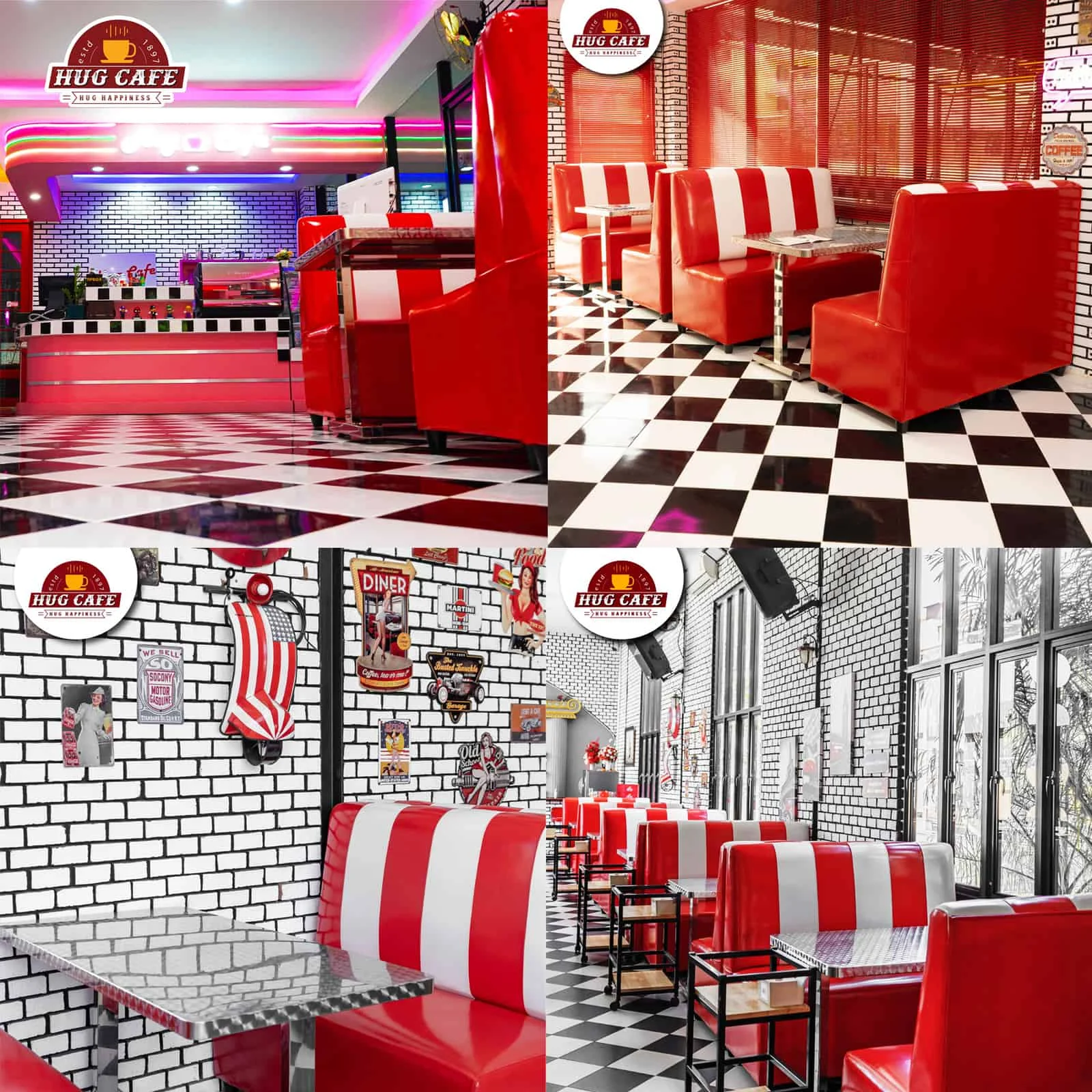 - คาเฟ่ตกแต่งสไตล์อเมริกันยุค 90 คลุมโทนสีขาว แดง สีสันสดใส