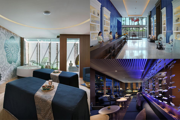 บรีซ สปา (ซ้าย) ที่สุดของการผ่อนคลายในบรรยากาศสบายๆด้วยศาสตร์การบําบัดและทรีตเมนต์และ รีฟ เดลี แอนด์ ไวน์เลาจน์ (ขวาล่าง) ห้องดินเนอร์พร้อมไวน์ชั้นดีที่คัดสรรจากทั่วโลก