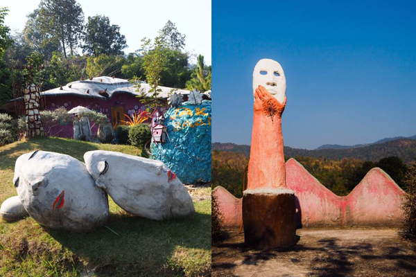 ตัวอย่างงานศิลป์ Junk Art ซึ่งจะพบได้ทั่วบริเวณ
