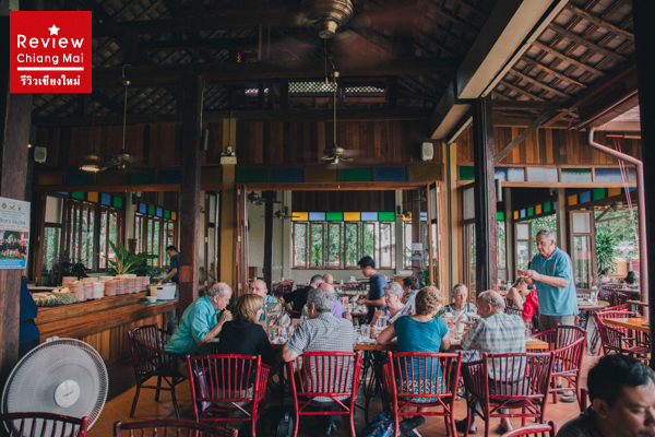 ด้านในเย็นสบาย ช่วงเย็นมักจะมีนักท่องเที่ยวชาวต่างชาติแวะเวียนมาทานอาหารอย่างไม่ขาดสาย