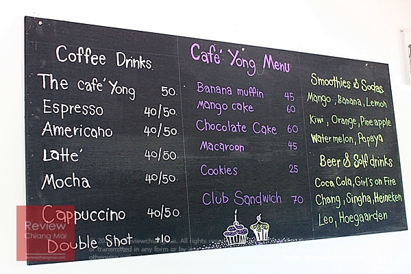 นอกจากกาแฟยองที่ว่า พวก คาปูชิโน่ เอสเพรสโซ่ มอคค่า ลาเต้ ก็มีเหมือนกัน เครื่องดื่มอย่างอื่นนอกจากกาแฟก็จะมี สมูทตี้ หรือว่าเบียร์เย็น กันอีกด้วย อ่อ ลืมไปคุ๊กกี้ เค้ก มัฟฟิน แซนด์วิซ ก็สามารถสั่งมาทานได้เน้อ