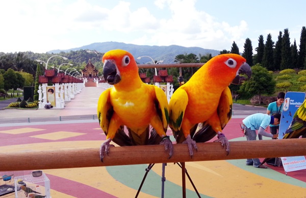 ชมการแสดงโชว์นกแก้วปากขอต่างประเทศหลากสีหลายพันธุ์ จากชมรมรักษ์นกบินอิสระ (ประเทศไทย) ณ ลานราชพฤกษ์ อุทยานหลวงราชพฤกษ์ จังหวัดเชียงใหม่