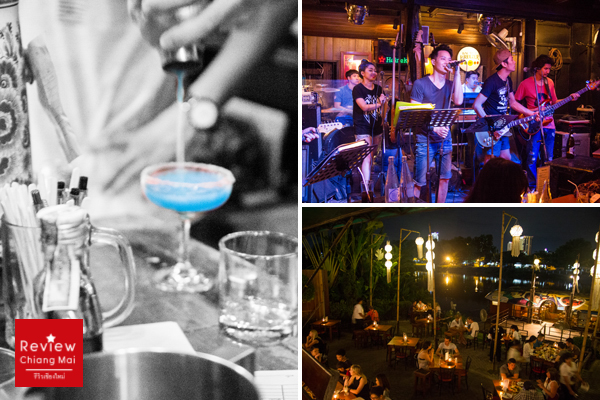 ร้านนั่งดื่มที่โด่งดังในเรื่องดนตรีสดเล่นมันส์ติดอันดับต้นๆของเชียงใหม่ต้องยกให้ริเวอร์ไซด์ เปิดให้บริการ 2 ฝั่งคือ ฝั่งบ้านและฝั่งริมน้ำ โดยฝั่งบ้านเหมาะสำหรับไปนั่งทานข้าวกับครอบครัวหรือคนรัก แต่ฝั่งน้ำเหมาะสำหรับไปนั่งชิลสังสรรค์กับแก๊งค์เพื่อนฝูง อาหารมีทั้งสไตล์ไทยและยุโรป เมนูเด็ดไม่ควรพลาดคือ เมี่ยงปลาทับทิม
