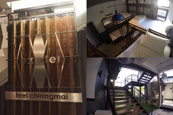 แต่เดิมที่นี่เป็นอาคารพาณิชย์เก่าแก่ เป็นรูปทรงของสถาปัตยกรรมเพื่อการพาณิชย์ แต่ด้วยเป็นชัยภูมิที่เหมาะเจาะ บรรดาหนุ่มสาวชาวสถาปนิกแม่โจ้กลุ่มหนึ่งจึงขอติดต่อเพื่อทำเป็นโฮสเทลในย่านที่เขาคิดว่าโดนที่สุดของเชียงใหม่ แถมยังเป็นถนนวัฒนธรรมอีกสายของที่นี่ สำหรับ OXOTEL มีห้องพักทั้งหมด 12  ห้อง เป็นแบบเตียงรวมบรรยากาศสุดชิค 6 ห้อง และเป็นแบบPrivate 6 ห้อง ในราคาเตียงรวม เตียงละ 470 บาท ส่วนPrivate เริ่มต้นที่ 1150 บาท