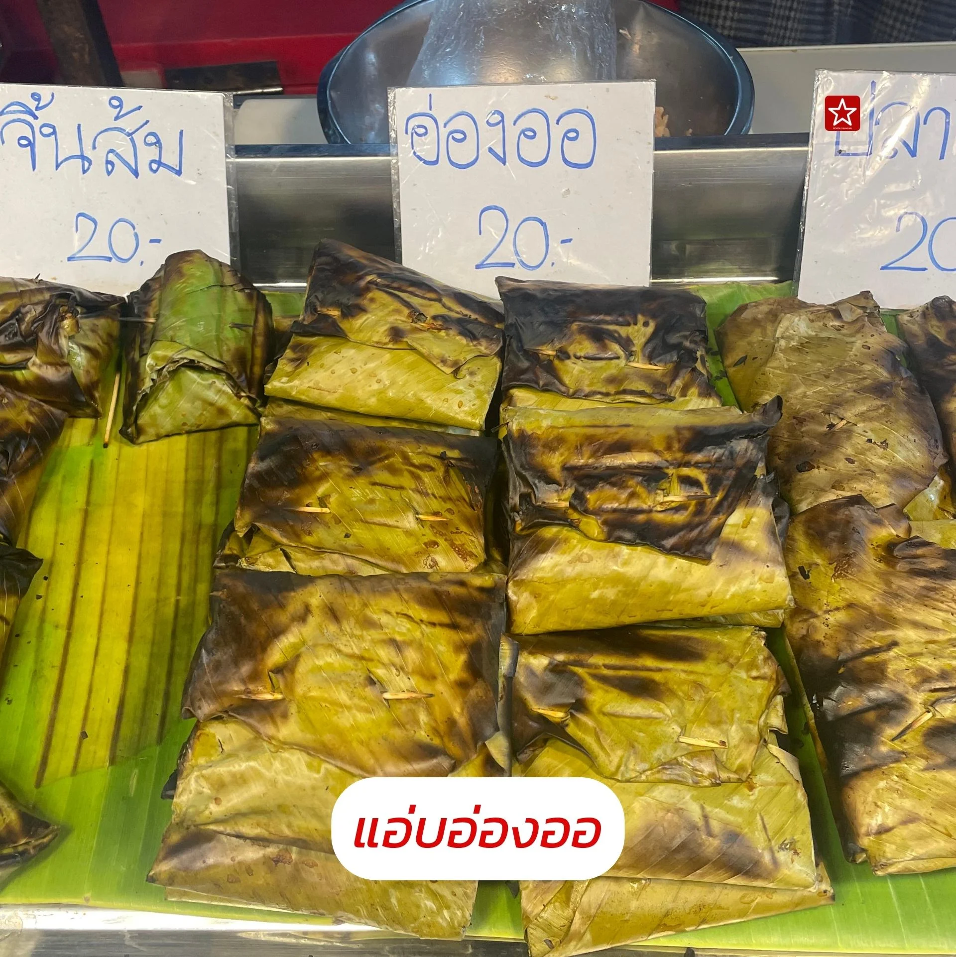 หรือแอ็บสมองหมู ชื่ออาจจะดูไม่ค่อยชวนให้น้ำลายไหล แต่ถ้าได้ชิมละก็บอกเลยว่าต้องอยากซ้ำแน่นอน กินกับข้าวเหนียวร้อนๆ คือที่สุด อย่างที่บอกไปว่าแอ็บจะห่อด้วยใบตองและมีลักษณะแบน ขั้นตอนการทำเเละเครื่องปรุงจะคล้ายกับห่อนึ่ง แต่ต่างที่ทำให้สุกโดยปิ้งหรือย่าง ด้วยไฟอ่อนๆ จนข้างในสุก ปัจจุบันมีทั้งแอ็บปลา แอ็บกุ้ง ฯลฯ แต่แอ็บอ่องออจะต่างจากแอ็บอื่นตรงที่ใส่ไข่ไก่เข้าไปด้วย
