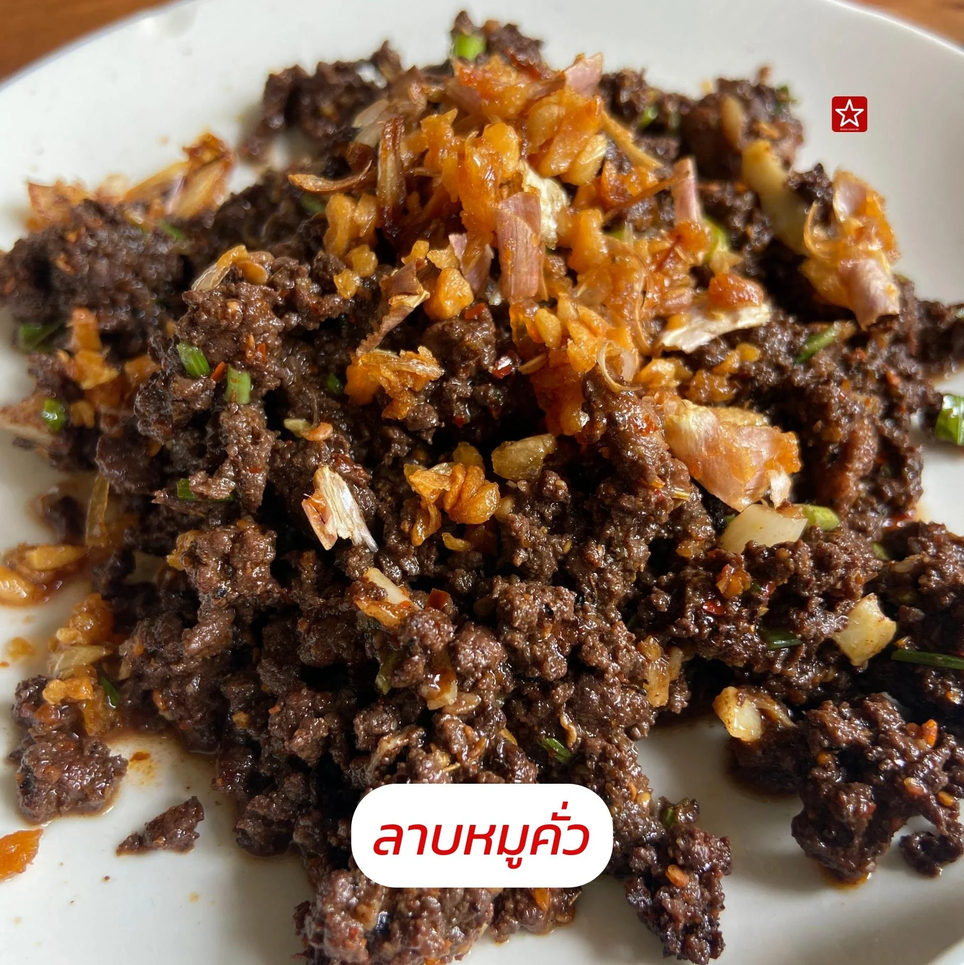 เป็นเมนูที่นิยมทำกินกันในโอกาสพิเศษ งานเลี้ยงหรือในเทศกาลต่างๆ ขึ้นชื่อว่าลาบหมู วัตถุดิบหลักชูโรงก็คงหนีไม่พ้นหมู และที่ขาดไม่ได้เลย ต้องเสริมทัพด้วยเครื่องในหมูด้วยนะ ไม่ว่าจะเป็น ตับหมู ไส้อ่อน หนังหมู แต่อีกอย่างที่ทำให้ลาบเหนือเด็ดไม่แพ้ใครเลยคือ น้ำพริกลาบ เพราะประกอบด้วยเครื่องเทศหลากหลายชนิด ทำให้มีกลิ่นและรสชาติที่เป็นเอกลักษณ์ โดยมีมะเเขว่นเป็นส่วนผสมหลัก ซึ่งทำให้ลาบหมูคั่วเมืองเหนือของเรามีรสชาติจัดจ้าน หอมถึงเครื่องมากๆ แค่ได้กลิ่นก็น้ำลายสอเเล้ว เสริฟ์พร้อมผักลาบบอกเลยว่าคือที่สุดดด