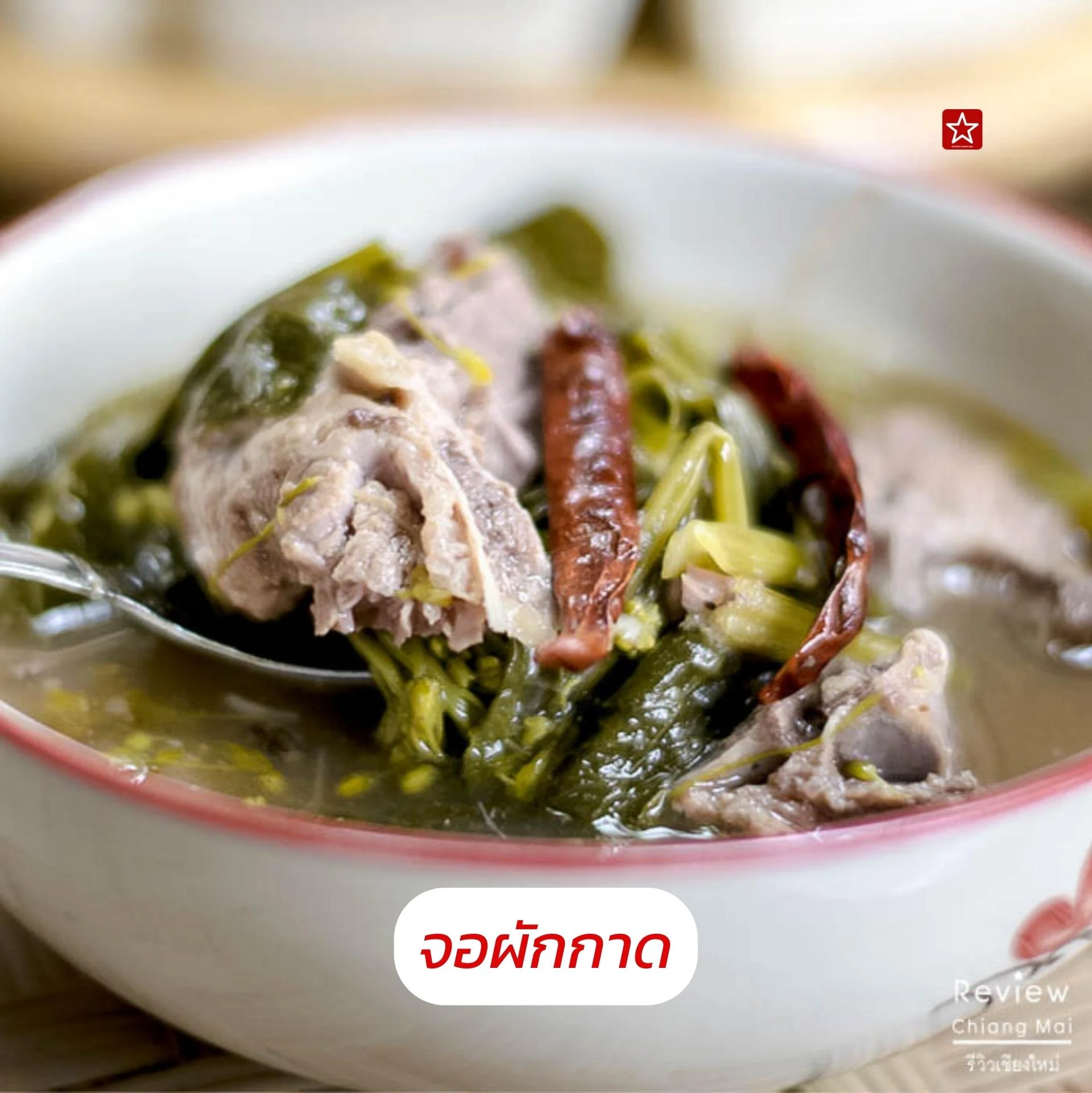 เคยกิ๋นผักกาดจอ บ่เคยกิ๋นพิซซ่า หากว่าลงต๊องจะยะจะได! เนื้อเพลง ไว้ใจ๋ได้ก่าที่ติดหู ติดปากกันมาถึงปัจจุบัน ใครจะไปเชื่อว่ามีเมนูอาหารเหนือแท้ๆ อยู่ในนั่น ร้องมาตั้งแต่เด็ก จำความได้ก็กินจอผักกาดมาตั้งแต่ตอนนั้นเลยเหมือนกัน เมนูสุดฮิตของคนเหนือที่ห้ามพลาด พูดถึงจอผักกาด วัตถุดิบหลักก็ต้องเป็นผักกาดจ้อน แต่ทีเด็ดอยู่ที่เนื้อสัตว์อย่างกระดูกหมูและหมูสามชั้น เสิร์ฟความหอมของน้ำมะขาม ถั่วเน่าแข็บ กะปิ หอมแดง ผักชี และที่ขาดไม่ได้เลยคือหอมเจียวปิดท้ายก่อนยกหม้อ บอกเลยว่าหอมไป 8 บ้าน 10 บ้าน เด็ดจริงต้องลอง