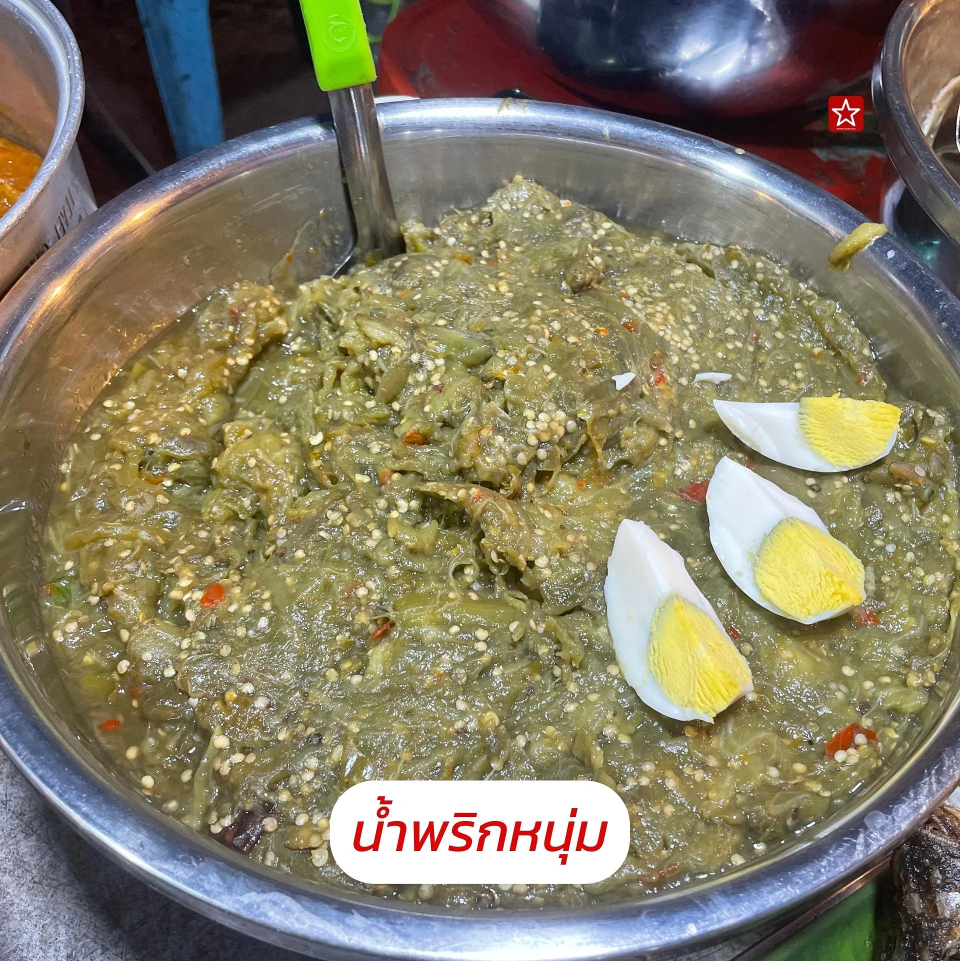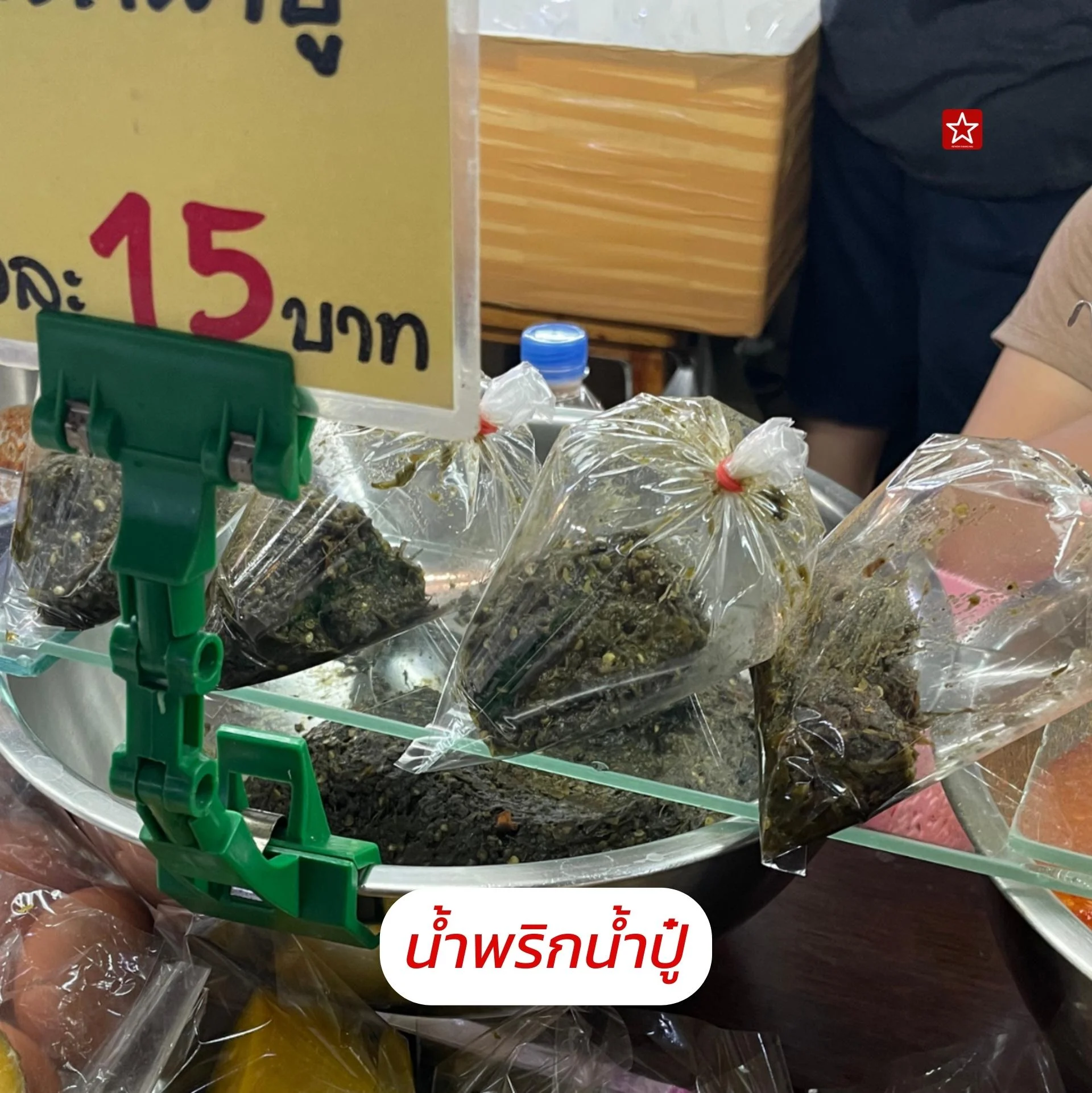 น้ำพริกสีดำจากปูนาแท้ๆ ในท้องไร่ท้องนา ที่ชาวบ้านนิยมเก็บปูกันในช่วงปลูกข้าว แต่ด้วยขั้นตอนการทำที่พิถีพิถันและใช้ระยะเวลาในการทำนาน ปัจจุบันจึงนิยมใช้แบบสำเร็จตามตลาดแทน แต่รสชาติก็ออกมาเข้มข้นไม่แพ้กับทำเองแน่นอน ซึ่งน้ำปู๋ถือเป็นวัตถุดิบหลักในการทำน้ำพริกน้ำปู๋นั่นเอง และมีกระเทียม หอมแดง พริกสด ตะไร้ ผักชี เสริมรสชาติให้กลมกล่อมมากขึ้น มักกินกับหน่อต้ม ไข่ต้ม ผักสด ยอกกับข้าวเหนียวร้อนๆ บอกเลยว่าเด็ด