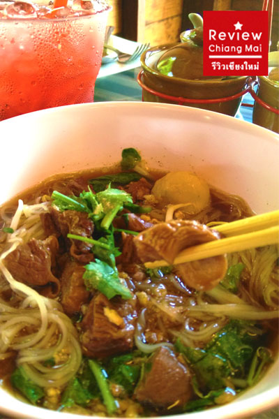 เมนูแนะนำ ก๋วยเตี๋ยวหมูตุ๋น (หมูตุ๋นนุ่ม น้ำซุปเข้มข้นแทบไม่ต้องปรุง) แต่ถ้าหากอยากทานข้าว เมนูอาหารไทยรสเลิศก็มีพร้อมเสิร์ฟทั้ง ข้าวต้มซี่โครงหมูรสอร่อย (มีเฉพาะช่วงเช้า) ผัดไทยกุ้งสด, ขนมปังหน้าหมู, ขนมจีบ, ก๋วยเตี๋ยวคั่วไก่ (เฉพาะวันเสาร์ – อาทิตย์) และเครื่องดื่มหลากชนิด ราคาเริ่มต้น 35 บาท ทานคนเดียวอิ่ม