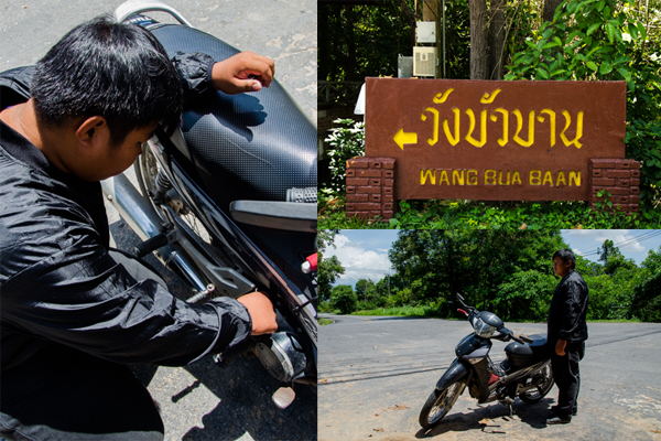 แต่ผมก็ยังไม่สงสัยว่ามอเตอร์ไซค์เป็นอะไร ยังคงสตาร์ทรถใหม่ แล้วขี่ไปต่อจนถึงวังบัวบานซึ่งเป็นจุดพักรถ ผมก็จอดพักรถเพื่อรอให้เครื่องยนต์หายร้อน แต่คำตอบจากการชะล่าใจคือรถผมสตาร์ทไม่ติดอีกเลย…เมื่อผมออกแรงถีบคันสตาร์ทก็สัมผัสได้เพียงท่อนเหล็กแข็งๆ ที่มีหน้าจุดชนวนให้เครื่องยนต์ให้ทำงาน แต่ดันทำงานไม่ได้ขึ้นมาเฉยๆ ในหัวผมเริ่มคิดว่าเอาแล้วไง…จะทำอย่างไรดี…คิ้วผมเริ่มชนกัน ผมคิดว่ารถผมพังแล้ว ไม่ลูกสูบติดก็แหวนสูบละลายแน่ๆ