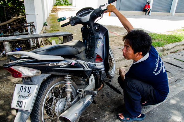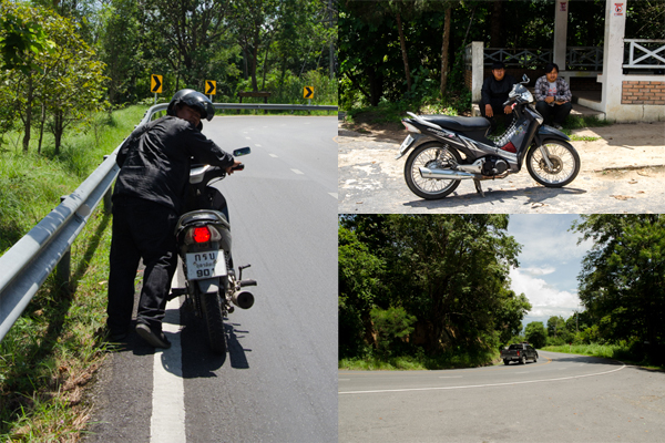แต่ผมก็ยังไม่สงสัยว่ามอเตอร์ไซค์เป็นอะไร ยังคงสตาร์ทรถใหม่ แล้วขี่ไปต่อจนถึงวังบัวบานซึ่งเป็นจุดพักรถ ผมก็จอดพักรถเพื่อรอให้เครื่องยนต์หายร้อน แต่คำตอบจากการชะล่าใจคือรถผมสตาร์ทไม่ติดอีกเลย…เมื่อผมออกแรงถีบคันสตาร์ทก็สัมผัสได้เพียงท่อนเหล็กแข็งๆ ที่มีหน้าจุดชนวนให้เครื่องยนต์ให้ทำงาน แต่ดันทำงานไม่ได้ขึ้นมาเฉยๆ ในหัวผมเริ่มคิดว่าเอาแล้วไง…จะทำอย่างไรดี…คิ้วผมเริ่มชนกัน ผมคิดว่ารถผมพังแล้ว ไม่ลูกสูบติดก็แหวนสูบละลายแน่ๆ