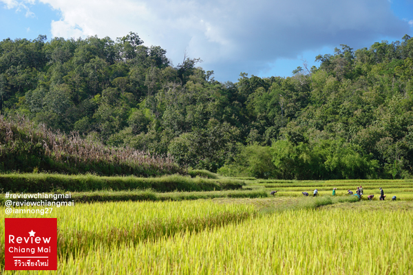 เข้าสู่ อ.แม่แจ่ม อดไม่ได้ที่จะขอเก็บรูปทุ่งนาซะหน่อย ช่วงนี้เริ่มเก็บเกี่ยวกันบ้างแล้วค่ะ มองไปไกลๆนี่ข้าวเป็นสีเหลืองทอง ตอนแดดส่องจะสวยมากๆ ขับรถมาจะรีบยังไงก็ต้องจอดเลยนะ บรรยากาศดีสุดๆ