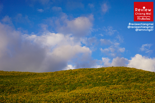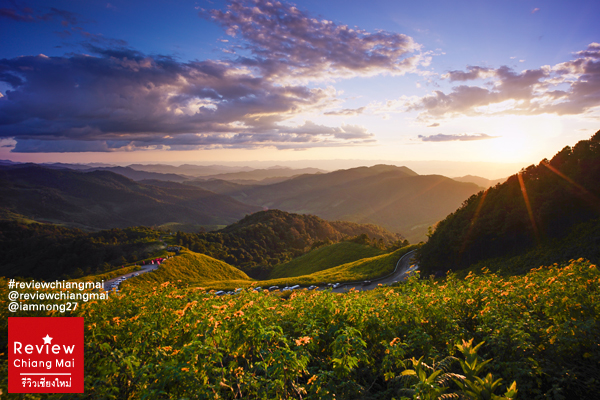 จากนั้นเริ่มเข้าสู่จังหวัดแม่ฮ่องสอนกันแล้วค่ะ เราตรงไปที่ อ.ขุนยวมเลย เพราะแสงเย็นที่ดอยแม่อูคอรอเราอยู่ ระหว่างทางเริ่มเต็มไปด้วยดอกบัวตองเรียงแถวยาวตามแนวถนน