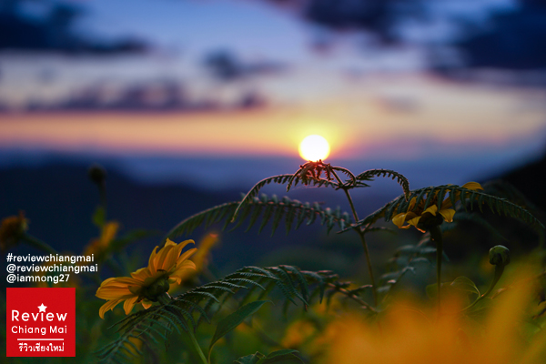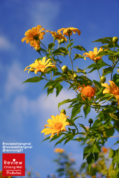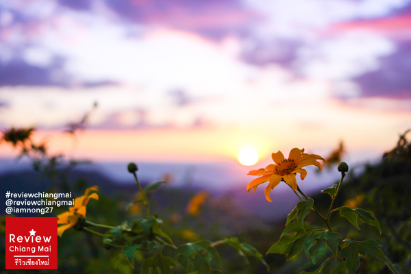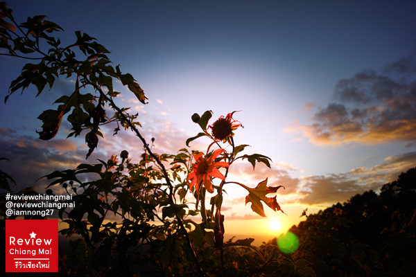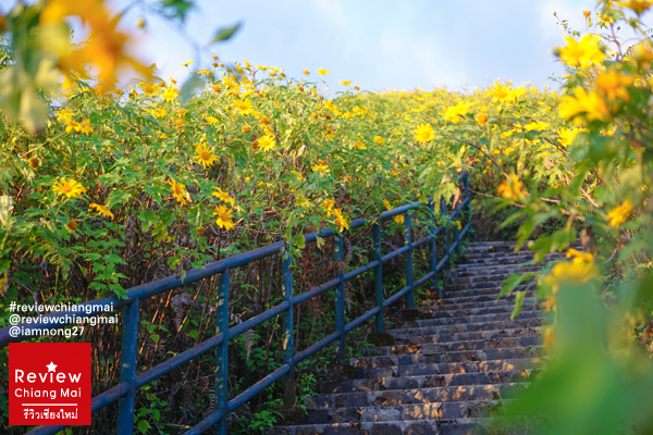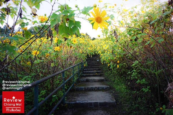 ไม่รอช้าก่อนพระอาทิตย์จะตกก็ค่อยเดินขึ้นไปตามทางบันไดค่ะ แต่ระหว่างทางต้นดอกบัวตองมันสูงใหญ่มากๆจนกิ่งก้านนี่โค้งลงมาเป็นอุโมงค์ย่อมเลย ตอนเดินต้องระหว่างกันนิดนึง เดี๋ยวจะไปเกี่ยวกระเป๋า เกี่ยวผมของเราได้
