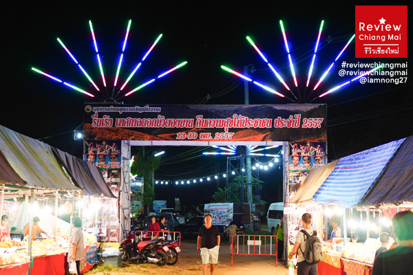 ทานข้าวเสร็จ ก็ออกไปสำรวจยามค่ำคืนของอ.ขุนยวมกันค่ะ เรามาช่วงเทศกาลทุ่งดอกบัวตองพอดี ที่นี่ก็เหมือนจะมีงานเล็กๆคล้ายๆงานวัด จริงๆมันคล้ายๆงานฤดูหนาวของทางเชียงใหม่เลยนะ มีสินค้าขายทั่วไป มีอาหารขาย มีเล่นเกมแลกรางวัลพวก ปาเป้า ปาลูกบอล จับฉลาก อะไรประมาณนี้ แล้วแต่ละวันก็จะมีคอนเสิร์ตค่ะ จำไม่ได้ว่ามีใครมาบ้าง งานมีวันที่ 13-19 พ.ย.57 กันเลย มีประกวดนางงามกันด้วยนะคะ