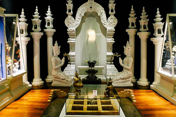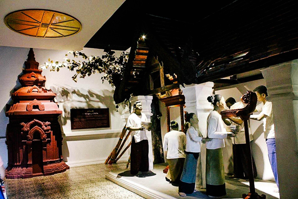 ซึ่งภายในอาคารสีขาวทรงยุโรปนี้จัดแสดงเกี่ยวกับวิถีชีวิต ความเชื่อ และงานศิลปะต่างๆ เช่น งานพุทธศิลป์ พิธีกรรมทางศาสนา สถาปัตยกรรม จิตรกรรม และประติมากรรมไว้ด้วยกันอย่างลงตัว โดยเน้นความเหมือนจริง ดังนั้นอย่าตกใจหากเข้าไปในห้องจัดแสดงแล้วคุณจะพบหุ่นขี้ผึ้งที่ตั้งอยู่รายล้อมห้อง ส่วนการเดินชมเชื่อมในแต่ละห้องนั้นก็ให้เดินตามลูกศรสีแดงที่พื้นไปเรื่อยๆ