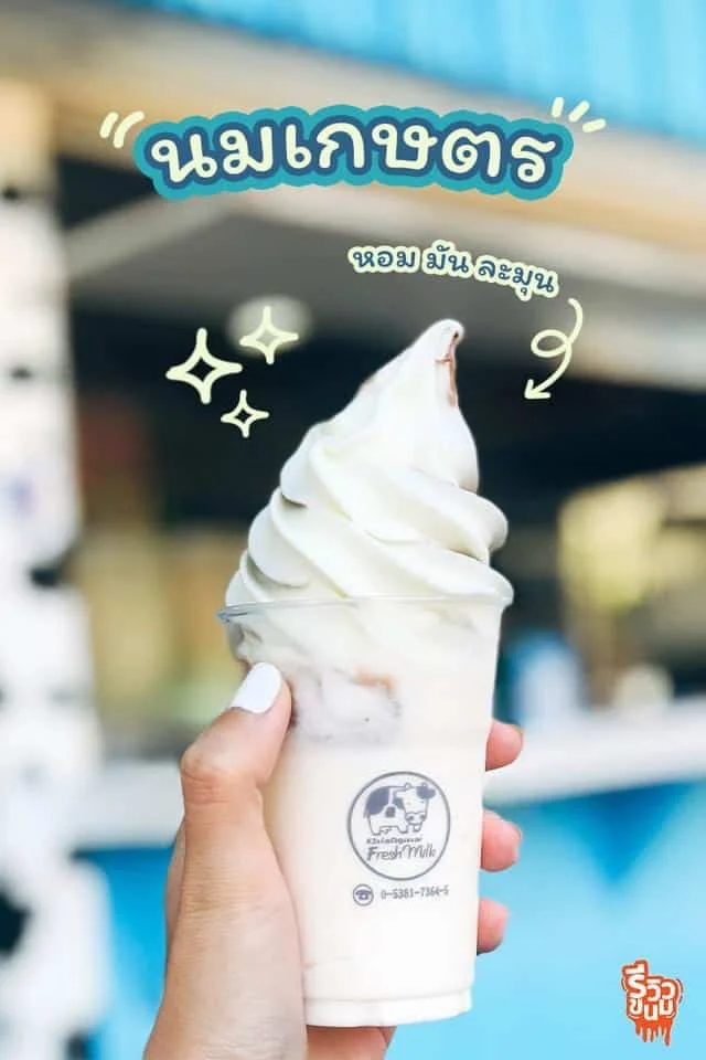 หากใครมีโอกาสเข้ามาใน มช. สิ่งที่ห้ามพลาดเลยคือ ต้องแวะร้าน นมเกษตร เพราะที่นี่เขามีเมนู float นมวนิลา topping ด้วยไอศกรีมทูโทนวนิลากับช็อคโกแลต เข้ากันสุดๆเพียง 30 บาท และยังมีเมนูอื่นๆ เช่น ไอศกรีมนม ไอศกรีมเยลลี่ เยอะแยะมากมายเลย ใกล้เข้าหน้าร้อนแล้ว อย่าลืมมาลองความสดชื่นกันน๊าาา