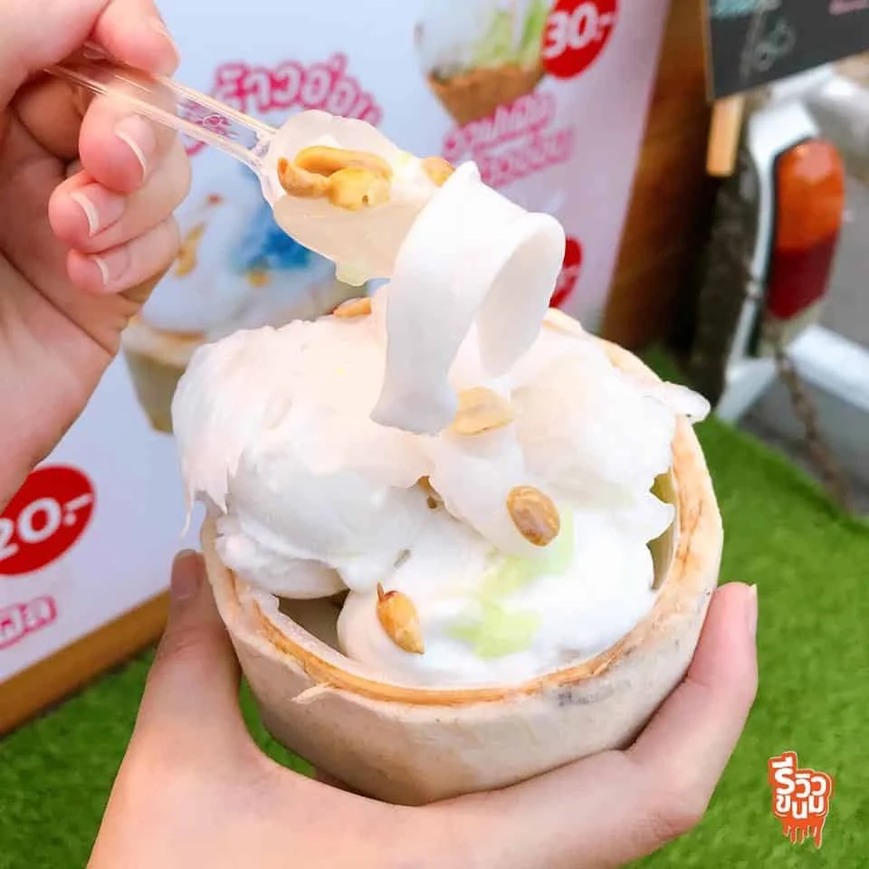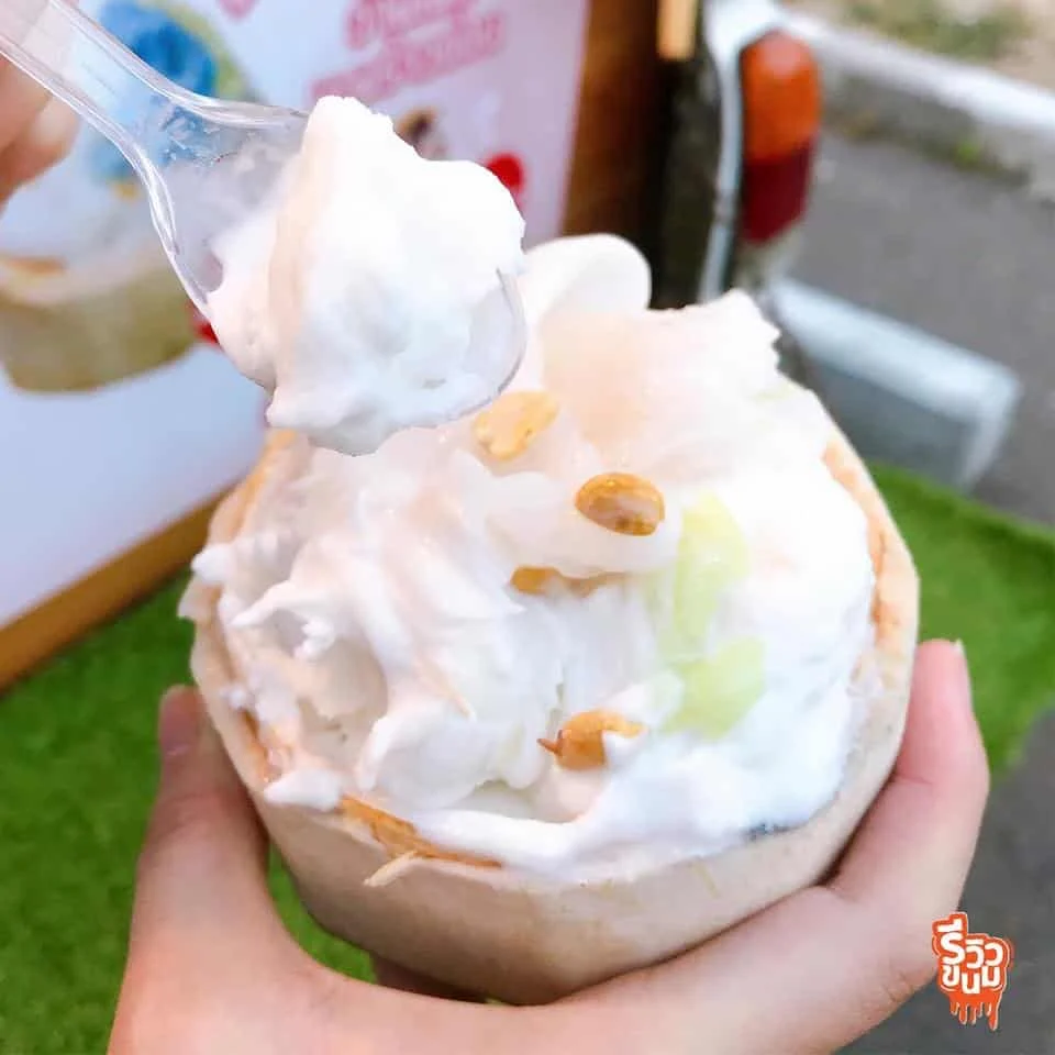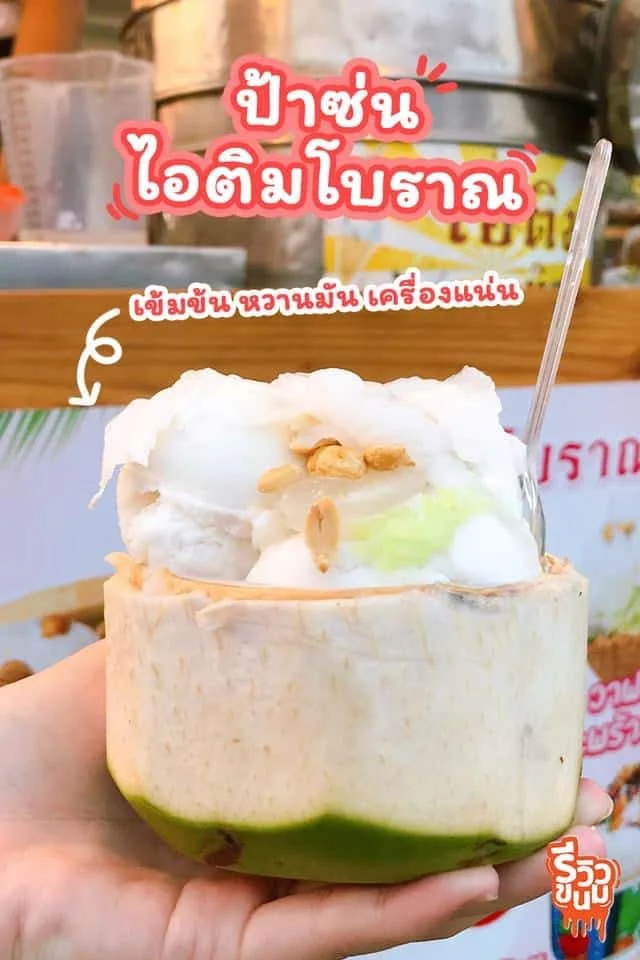 อากาศร้อนๆ ใครอยากกินไอติมเชิญทางนี้เลยป้าซ่นไอติมโบราณ เครื่องแน่น มีให้เลือกใส่ทั้ง ข้าวเหนียว ลูกชิด ถั่วลิสง ไฮไลท์ คือ เนื้อมะพร้าวอ่อนนุ่มๆ ไอติมกะทิไม่หวานจนเกินไป กินกับเครื่องที่ใส่มา ก็อร่อยชื่นใจ