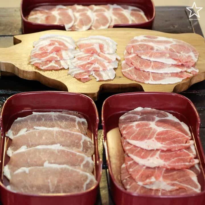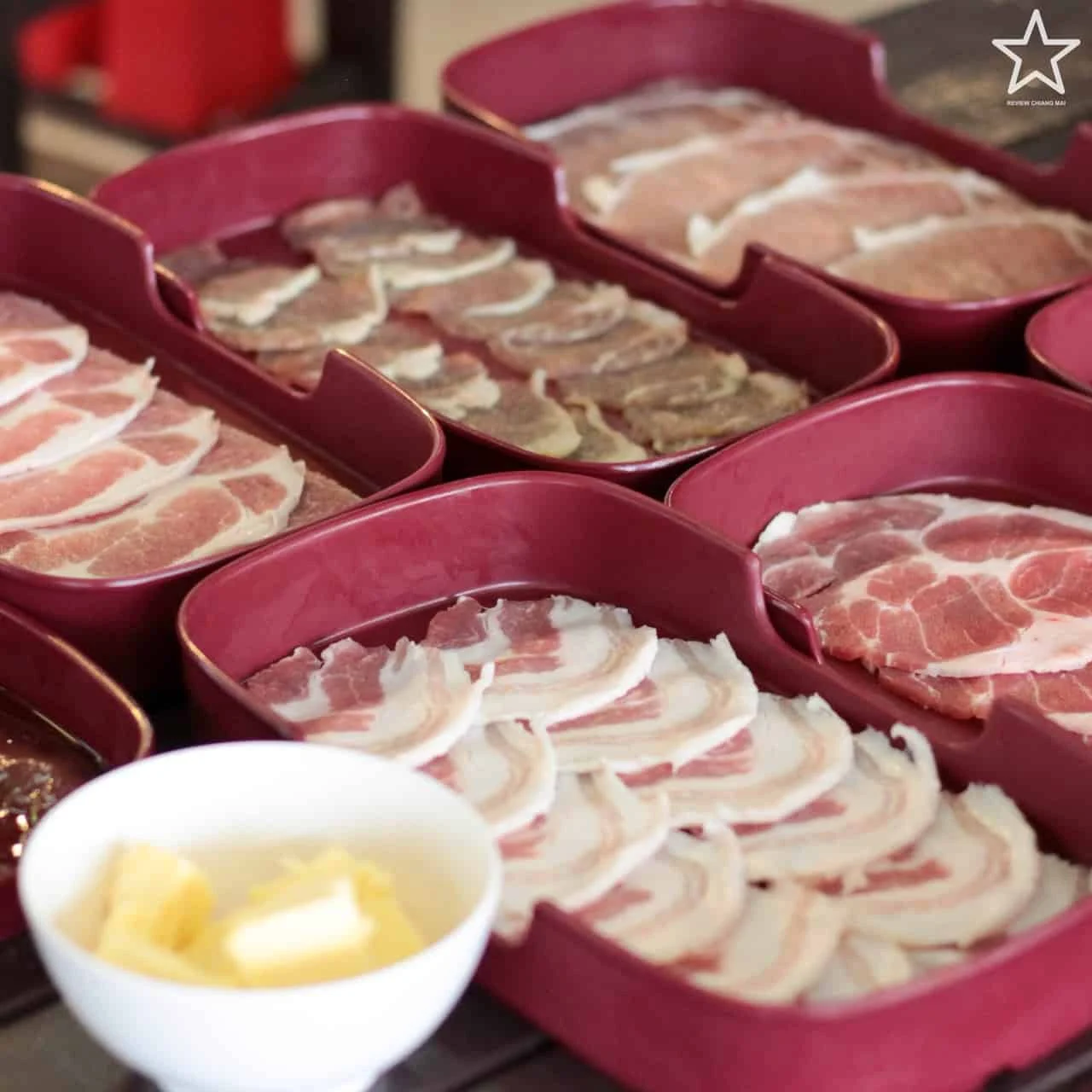 – มีเมนูทั้งหมด 20 กว่าเมนู มีทั้งหมูสไลด์หมูสันคอ หมูสามชั้น หมูสันนอก ไส้หวาน หมูหมัก เนื้อไก่หมักงาขาว หรือสำหรับใครที่เป็นสายเนื้อที่แท้ทรูก็สามารถสั่งทางร้านได้โดยทางร้านจะมีเนื้อส่วนริบอาย ใบพายและเสือร้องไห้หรือใครสายทะเลก็มี