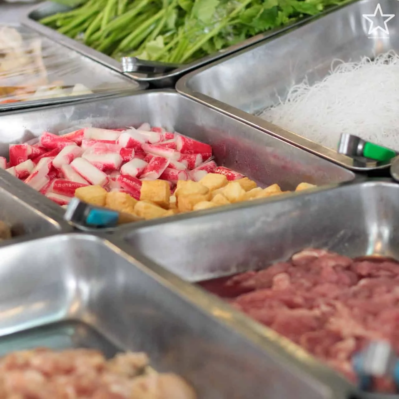 – น้ำจิ้มมีให้เลือกทั้งหมด 3 แบบคือ น้ำจิ้มสุกี้น้ำจิ้มซีฟู๊ดและน้ำจิ้มแจ่ว ใครชอบแบบไหนก็จัดไปเลยยย