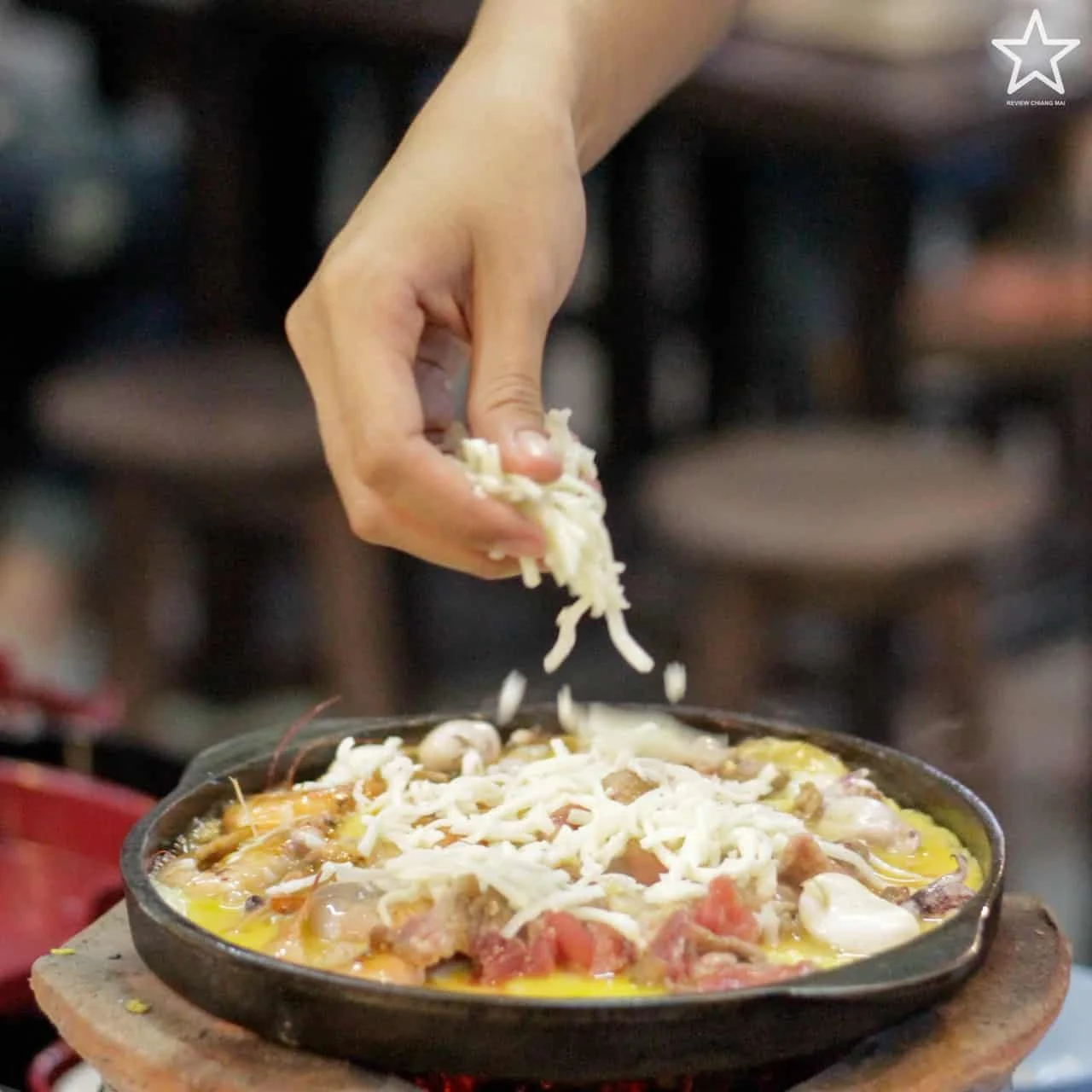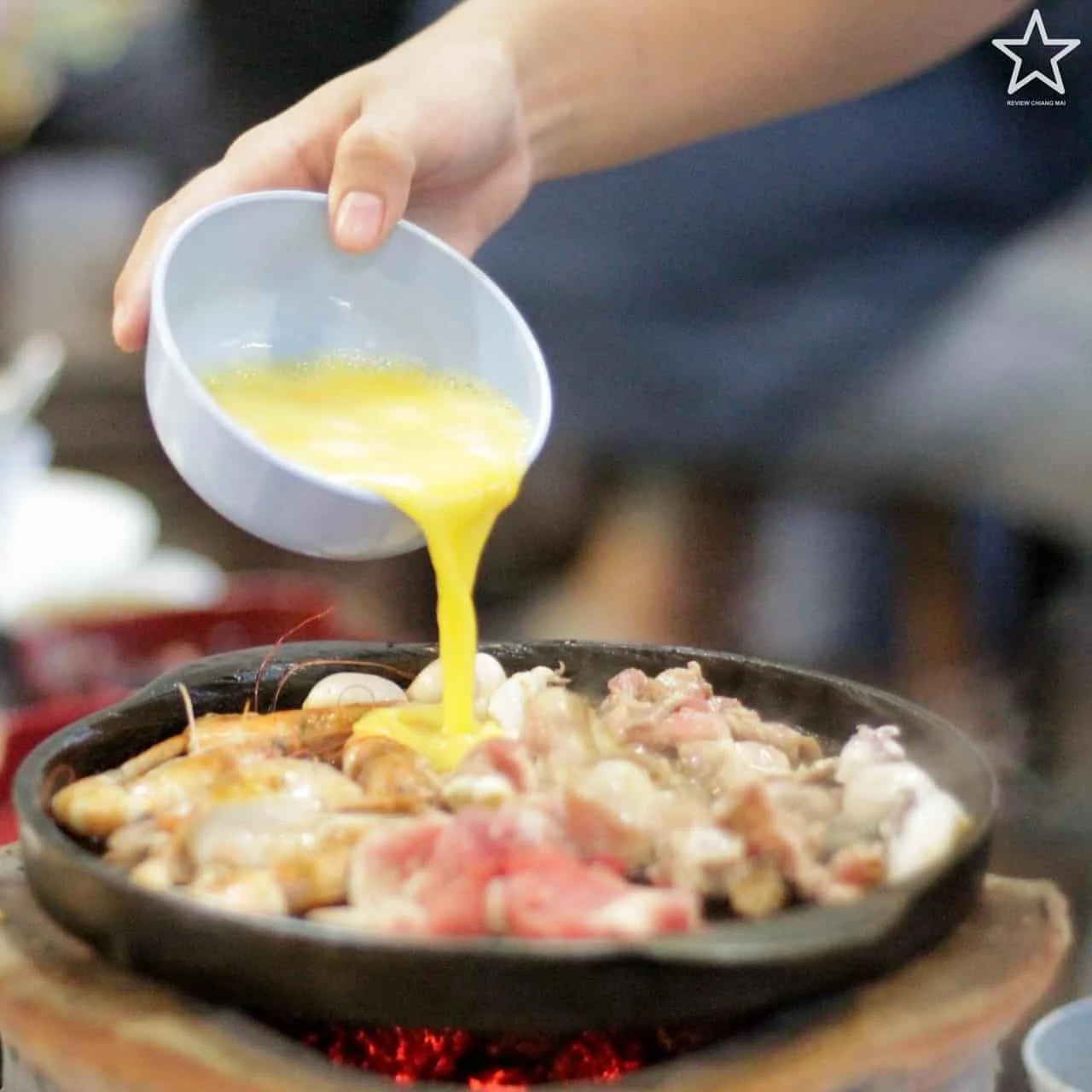 – เมนูเด็ด ที่ทางร้านนําเสนอคือ เมนูไข่กระทะร้อน คือการนําเนื้อสัตว์และผักต่าง ๆ มาย่างให้พอสุกแล้วตอกไข่ลงไป จากนั้นราดด้วยชีส รอจนชีสละลาย ก็กินได้เลยย หรือสั่งชีสมาย่างกินคู่กับเนื้อ เนื้อย่างหอมๆ กับชีสยืดๆ เกาหลีไปอีกอะแกรร