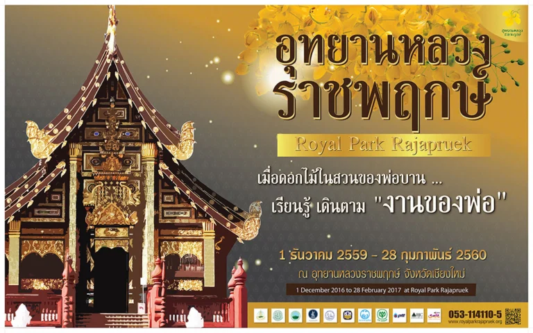 นอกจากนี้ ยังจะได้ชมความงดงามของไม้ดอกเมืองหนาวนับล้านดอกจากมูลนิธิโครงการหลวงและโครงการพัฒนาพื้นที่สูงแบบโครงการหลวง ที่พร้อมใจกันเบ่งบานเต็มสวนให้ได้ชื่นชมตลอด 90 วัน/ ชมการแสดงวิถีเกษตรของพ่อ “จากนภา ภูผา สู่มหานที” การจำลองป่าต้นน้ำ ป่า 3 อย่างประโยชน์ 4 อย่าง ฝายชะลอน้ำ รวมทั้งโครงการเครือข่ายอ่างเก็บน้ำ (อ่างพวง) อันเนื่องมาจากพระราชดำริในนิทรรศการ ดิน น้ำ ป่า ปรัชญาเศรษฐกิจพอเพียง ณ สวนเกษตรทฤษฎีใหม่ และกิจกรรมอื่นๆ อีกมากมาย งาน “อุทยานหลวงราชพฤกษ์ (Royal Park Rajapruek)” ระหว่างวันที่ 1 ธันวาคม 2559 ถึง 28 กุมภาพันธ์ 2560 วันจันทร์-พฤหัสบดี เปิดเวลา 08.00 – 18.00 น. วันศุกร์-อาทิตย์ และวันหยุดนักขัตฤกษ์ เปิดเวลา 08.00 – 19.00 น. อัตราค่าเข้าชมงาน คนไทย ผู้ใหญ่ 100 บาท เด็ก 70 บาท ชาวต่างชาติ ผู้ใหญ่ 200 บาท เด็ก 150 บาท ข้าราชการ ผู้สูงอายุ นักเรียน นักศึกษา แสดงบัตรคนละ 70 บาท (บริการรถพ่วงชมสวนฟรี!!!) ณ อุทยานหลวงราชพฤกษ์ ตำบลแม่เหียะ อำเภอเมือง จังหวัดเชียงใหม่