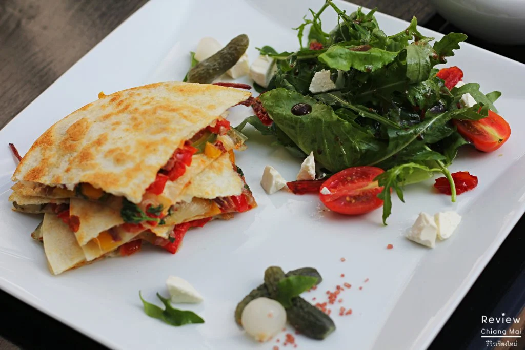 ช่วง 10.30-24.00 น. จะเป็นอาหารจานเดียว มีเมนูหลากหลายให้เลือก อาหารฟิวชั่นที่นี่ไม่ธรรมดา เชฟเป็นคนเชียงใหม่โดยกำเนิดได้สร้างสรรค์อาหารหลากสไตล์ บางเมนูผสมความเป็นพื้นเมืองล้านนาเข้าไปด้วย อย่างเมนูที่เห็นอยู่นี้คือพิซซ่าเม็กซิกันกับเนื้อต้มเค็ม เป็นหนึ่งในอาหารฟิวชั่นต้องห้ามพลาดของทาง Buritro Bar & Cafe’ ไปดูเมนูน่าลองอื่นๆ กันต่อฮะ
