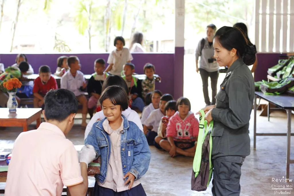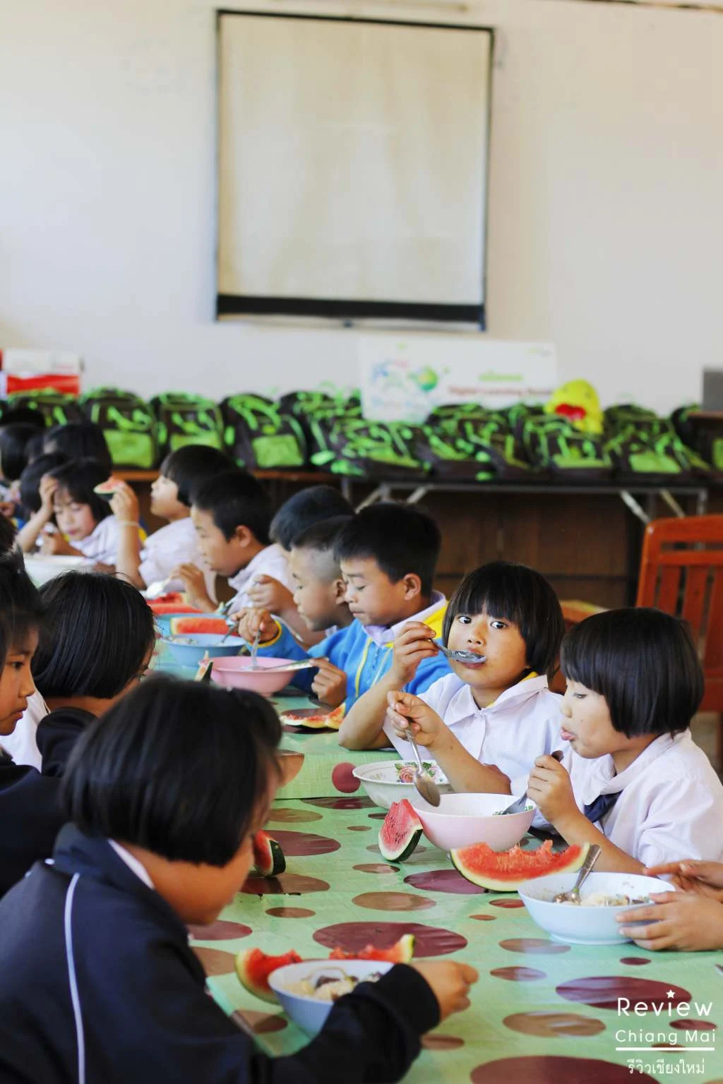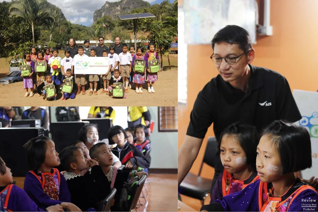 ในปีนี้ทางผู้บริหาร พนักงานของเอไอเอส รวมถึงเหล่าบล๊อกเกอร์อย่างพี่เจ๋ง ได้ไปมอบชุดอุปกรณ์ Digital Learning for Kids และเลี้ยงอาหารเด็กนักเรียน