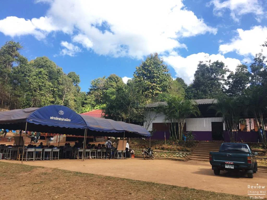 ห้องเรียนที่นี่กว้างมากกก เพราะอยู่กลางสนามกีฬาเลย เด็กๆ บอกว่าตอนเช้าอากาศหนาวมากเลยต้องย้ายมาเรียนกันที่สนาม ถึงจะอยู่กลางหุบเขาและห่างจากบริเวณชายแดนพม่าไม่กี่กิโลเมตรแต่สัญญาณโทรศัพท์ยังชัด เล่นโซเชียลได้ชิวเหมือนอยู่นิมมานฯ
