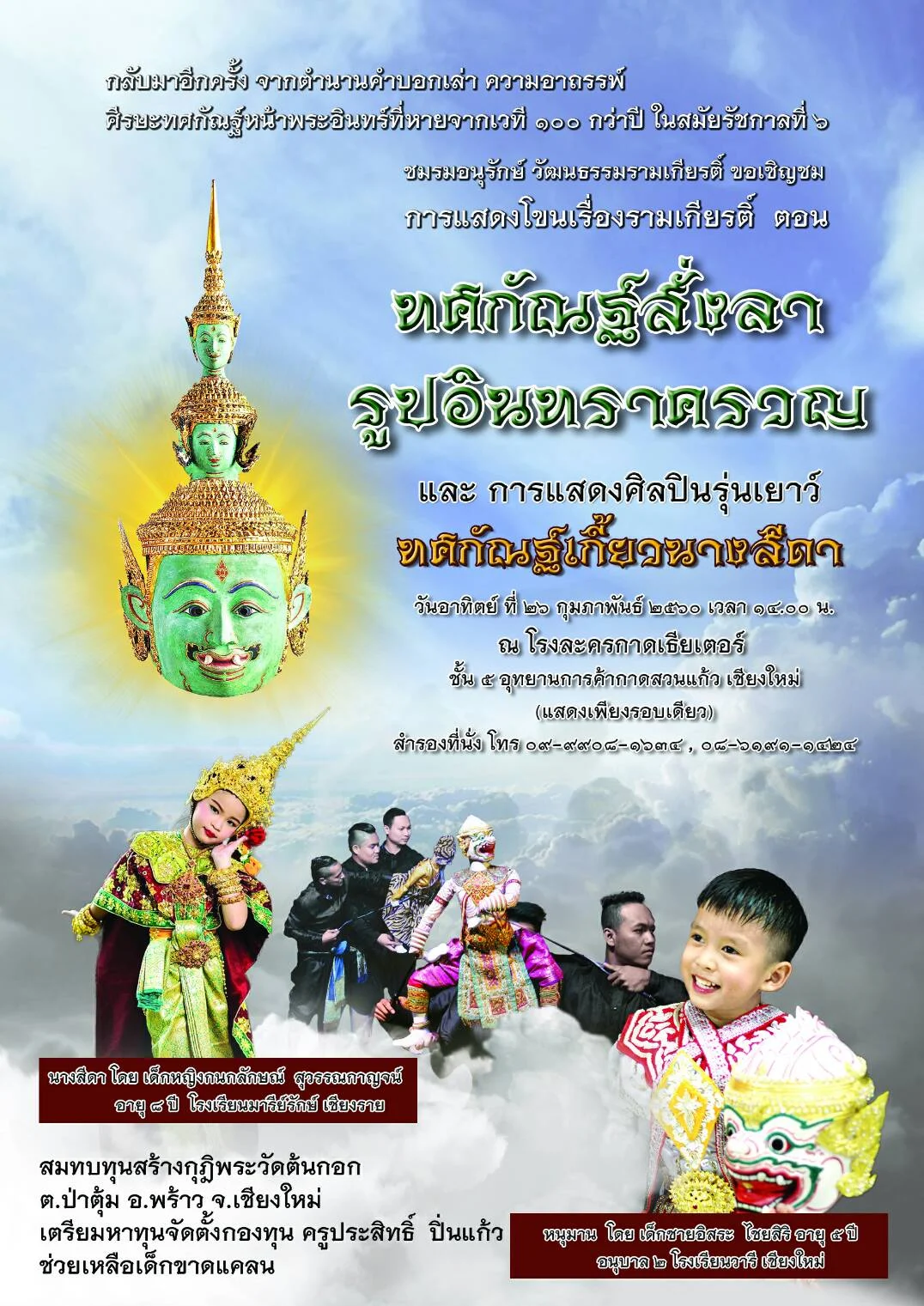 ขอเชิญชมการแสดงโขน ตอน “ทศกัณฐ์สั่งลา รูปอินทราครวญ” จากชมรมอนุรักษ์วัฒนธรรมรามเกียรติ์ พร้อมชมการแสดงจากศิลปินรุ่นเยาว์ “ทศกัณฐ์เกี้ยวนางสีดา” เปิดให้ชมเพียงรอบเดียวเท่านั้น เวลา 14.00 น. สำรองที่นั่งได้ที่ โทร. 099-9081634, 086-1911424