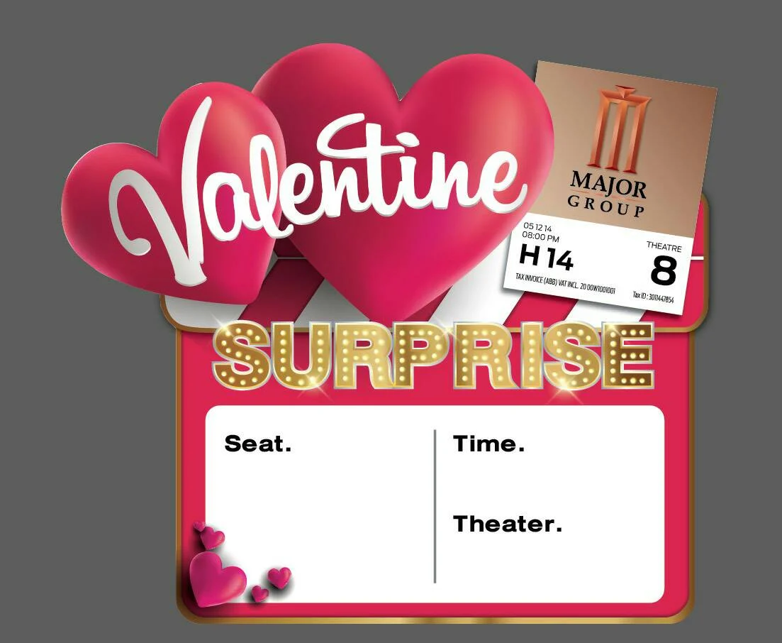 ฉลองวาเลนไทน์ 14 ก.พ.นี้ควงคู่กันมา 2 คน ดูหนังจบแล้วอาจเจอเซอร์ไพร์สรับตั๋วหนังฟรี!! Valentine Surprise ที่เมเจอร์ ซีนีเพล็กซ์ สาขาเซ็นทรัลพลาซา เชียงใหม่ แอร์พอร์ต และสาขาเซ็นทรัลเฟสติวัล เชียงใหม่