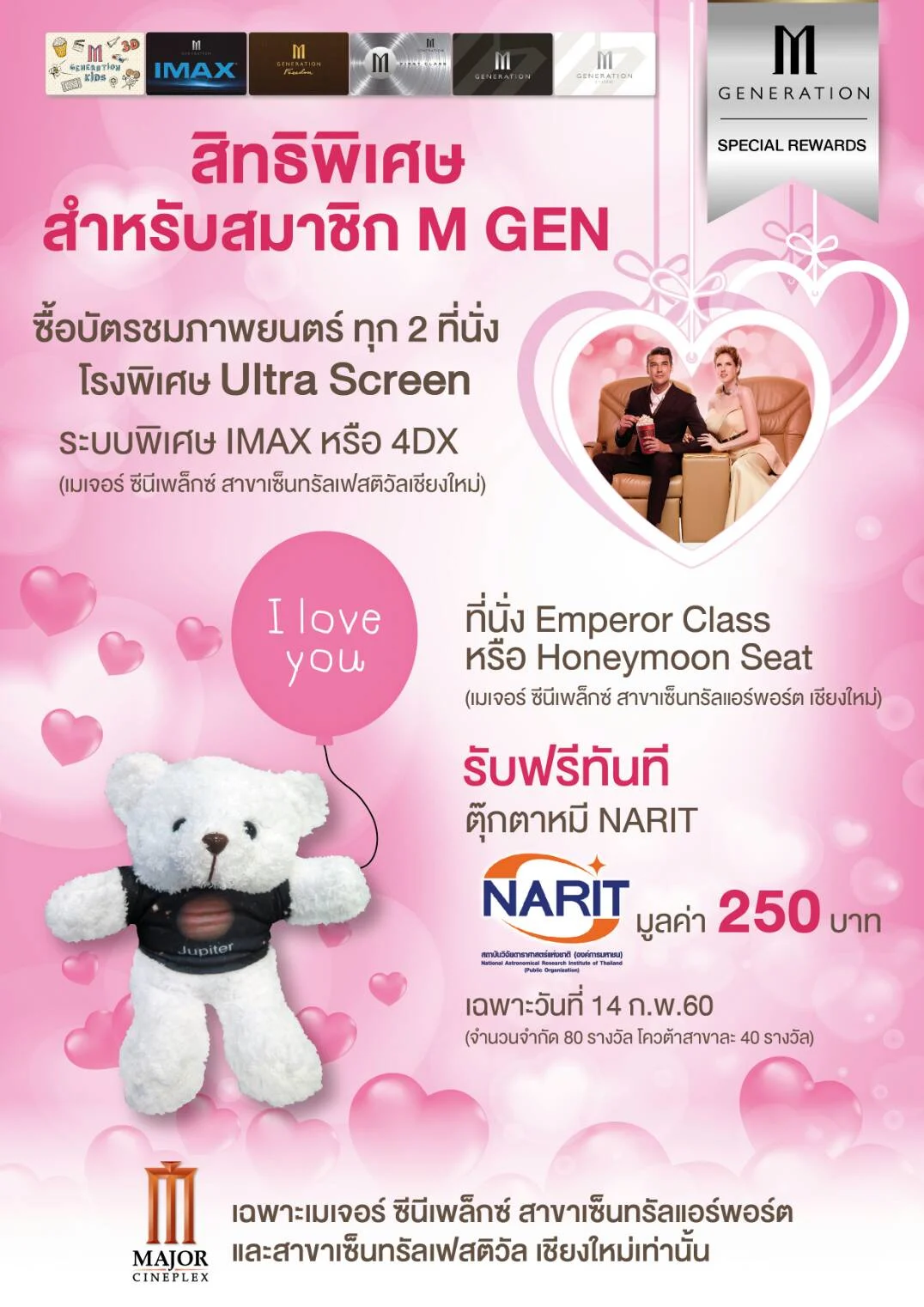 โปรโมชั่นวันวาเลนไทน์ ที่เมเจอร์ ซีนีเพล็กซ์ สาขาเชียงใหม่ รับฟรีทันทีตุ๊กตาหมี NARIT