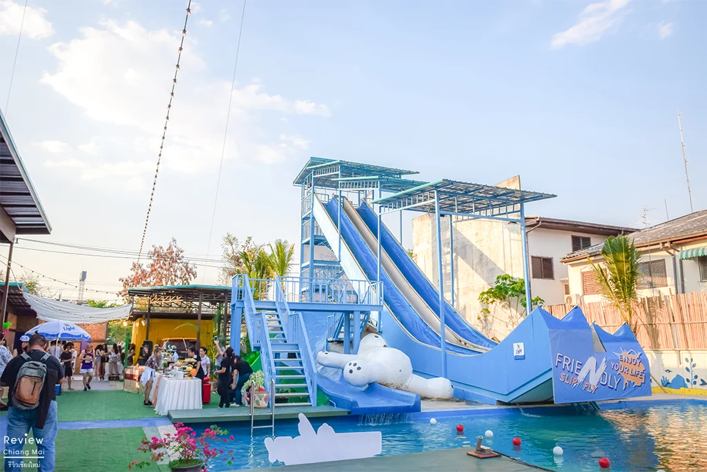 โครงการนี้ก่อตั้งโดย นาย นราธิป นามลือ ซึ่งเป็นลักษณะของโครงการ เป็นสวนน้ำขนาดย่อม บนเนื้อที่ประมาณ 1 ไร่ จุดเด่นหลักคือ ตั้งอยู่ใจกลางเมืองและใกล้แหล่งท่องเที่ยว โดยมี Highlight คือ Slip N Fly Slider ที่เป็นที่ยอดฮิตใน ณ ขณะนี้ และถือเป็นแห่งที่สองของประเทศไทยอีกด้วย ระบบน้ำเป็นระบบน้ำเกลือ ที่มีความสะอาดและปลอดภัยต่อลูกค้า อีกทั้งโครงการยังมีฟิตเนสในน้ำ และอื่นๆ อีกมากมาย เช่น อาหารเพื่อสุขภาพ เครื่องดื่มเพื่อสุขภาพ ปิ้งย่างยามเย็น Cocktail และดนตรีสุดเพราะ เป็นต้น