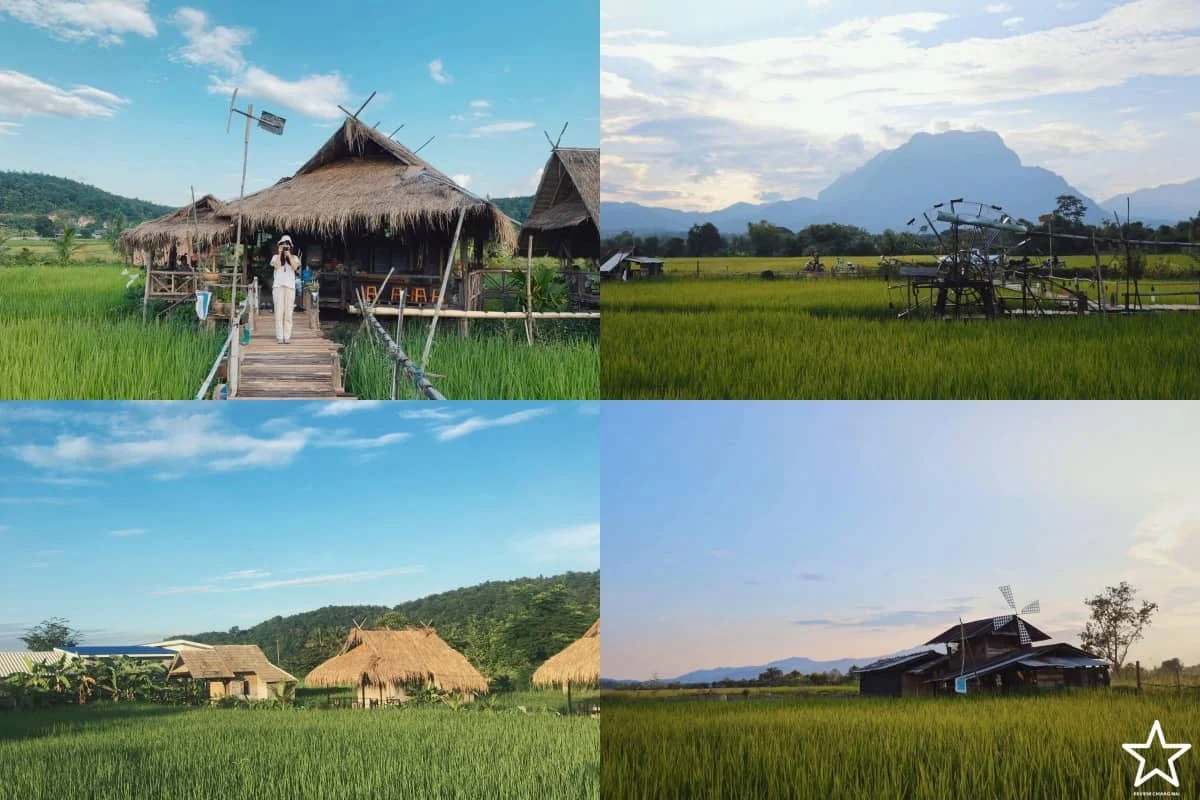 นาเขียว ๆ กับวิวธรรมชาติแบบ 360 องศา แบบนี้มีให้เห็นเพียงบางช่วงของปีเท่านั้นนะ ในรูปที่เราไปคือช่วงปลายกันยายน ข้าวกำลังเขียวเลย ที่พักราคาหลักร้อยแต่วิวหลักล้านจริง ๆ ในส่วนของอาหารการกินและที่พัก ทางโฮมสเตย์ก็จัดให้เราแบบดีมาก เราสามารถเดินเล่นถ่ายรูปได้ทั่วเลย อากาศดี หลับสบาย สไตล์คนชิลๆ