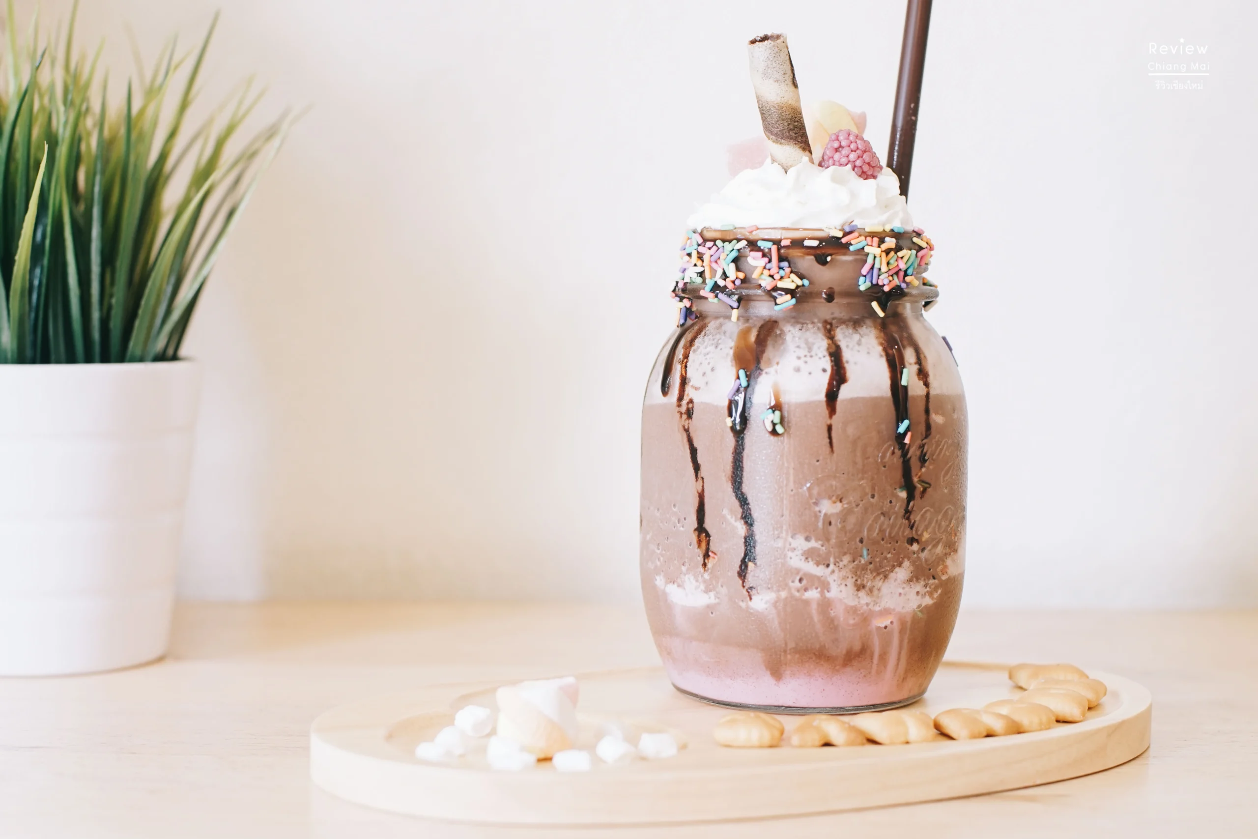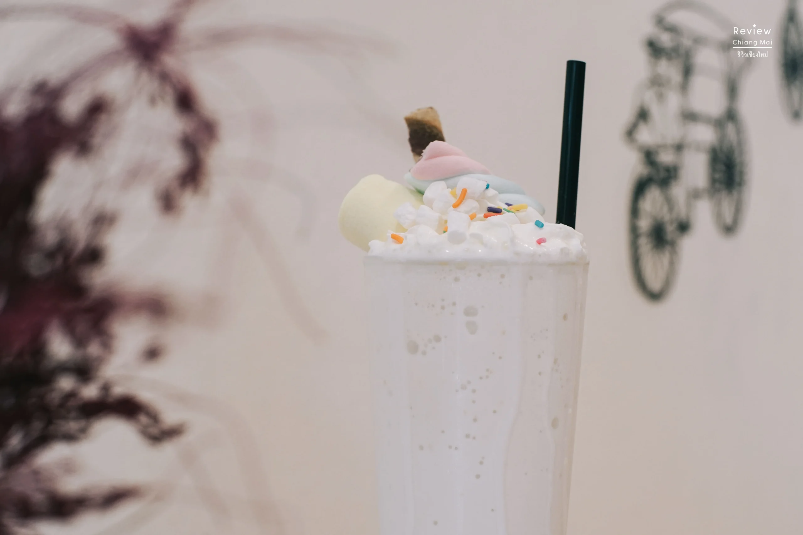 นมปั่น รสชาติเหมือนนมผงที่กินตอนเด็ก หอม หวานมันเบาๆ มีมาร์ชเมลโล่ให้กินฟรีๆด้วยหละ