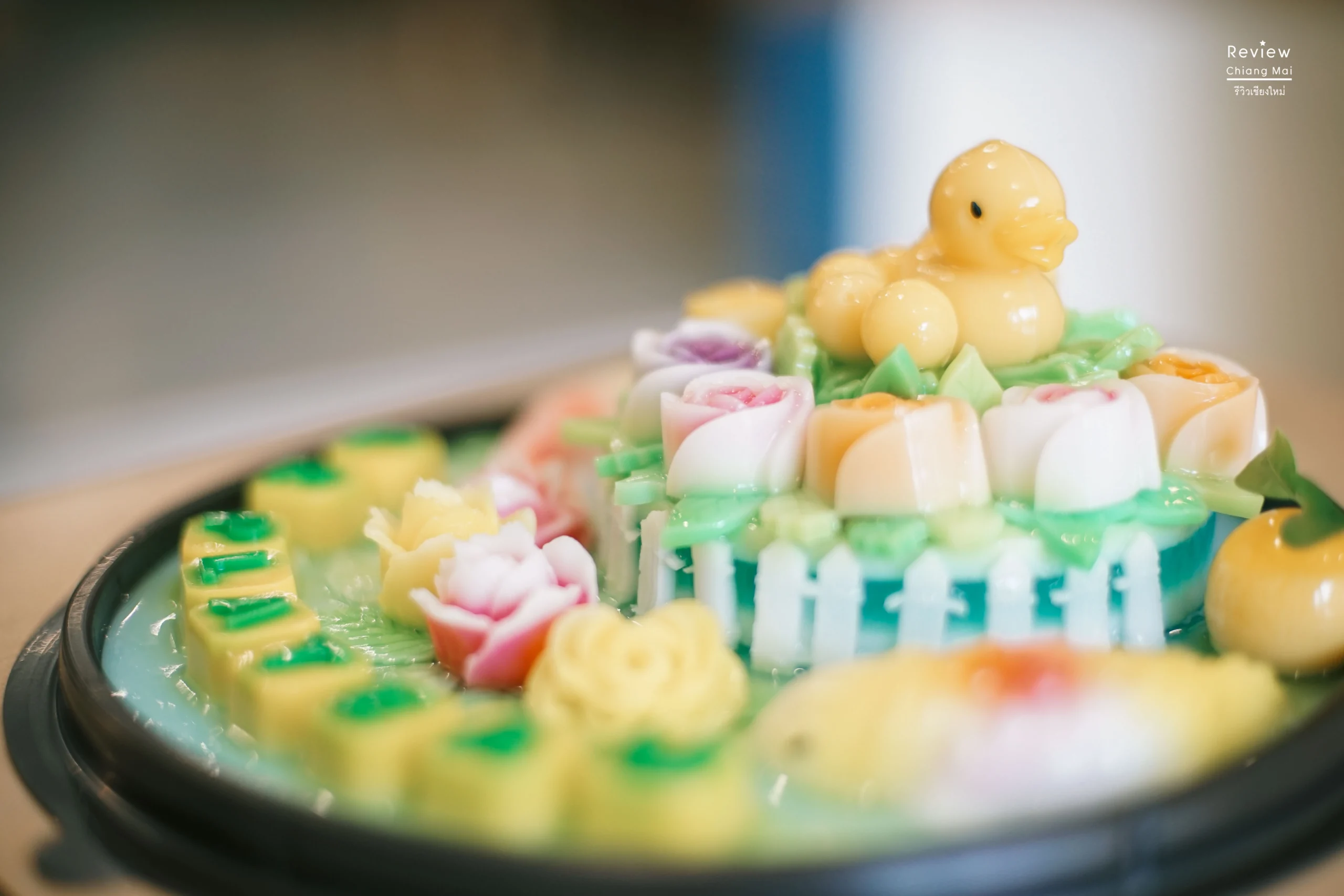 เค้กวุ้น โคตรอลังการคือชิ้นใหญ่มากสั่งทำเป็นเค้กวันเกิดก็ได้ ข้อดีคือ พอเป็นวุ้นมันกินได้เรื่อยๆไม่อ้วน