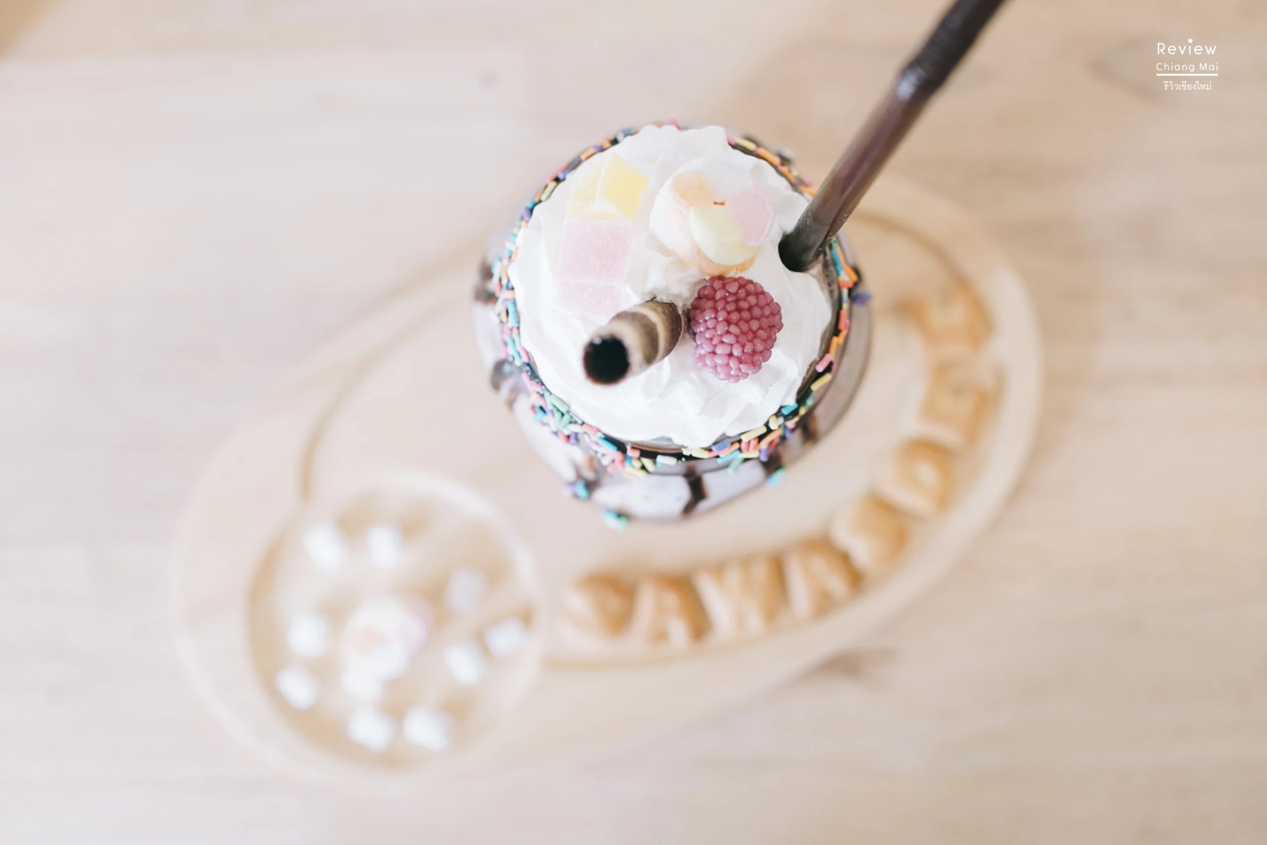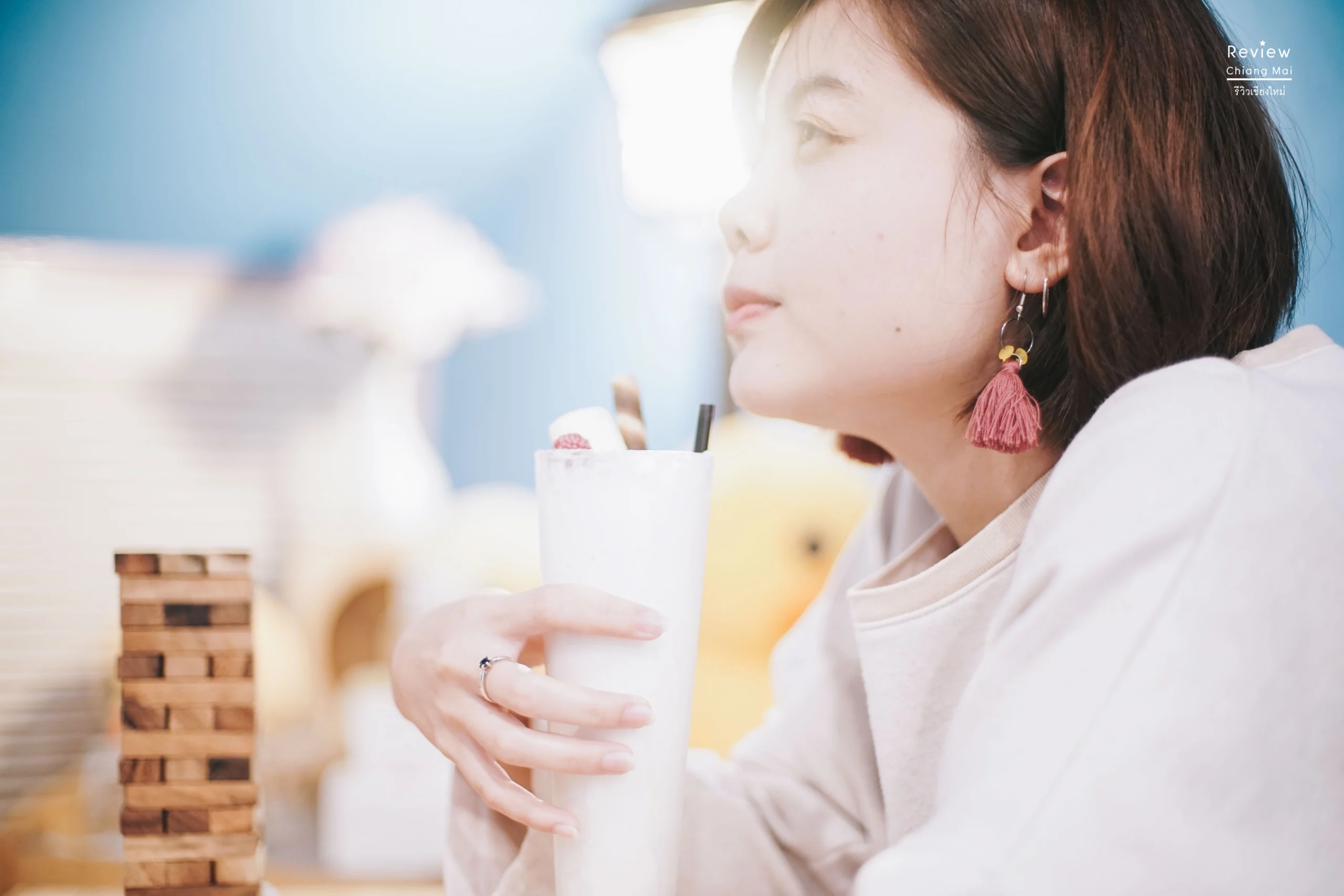 นมปั่น รสชาติเหมือนนมผงที่กินตอนเด็ก หอม หวานมันเบาๆ มีมาร์ชเมลโล่ให้กินฟรีๆด้วยหละ