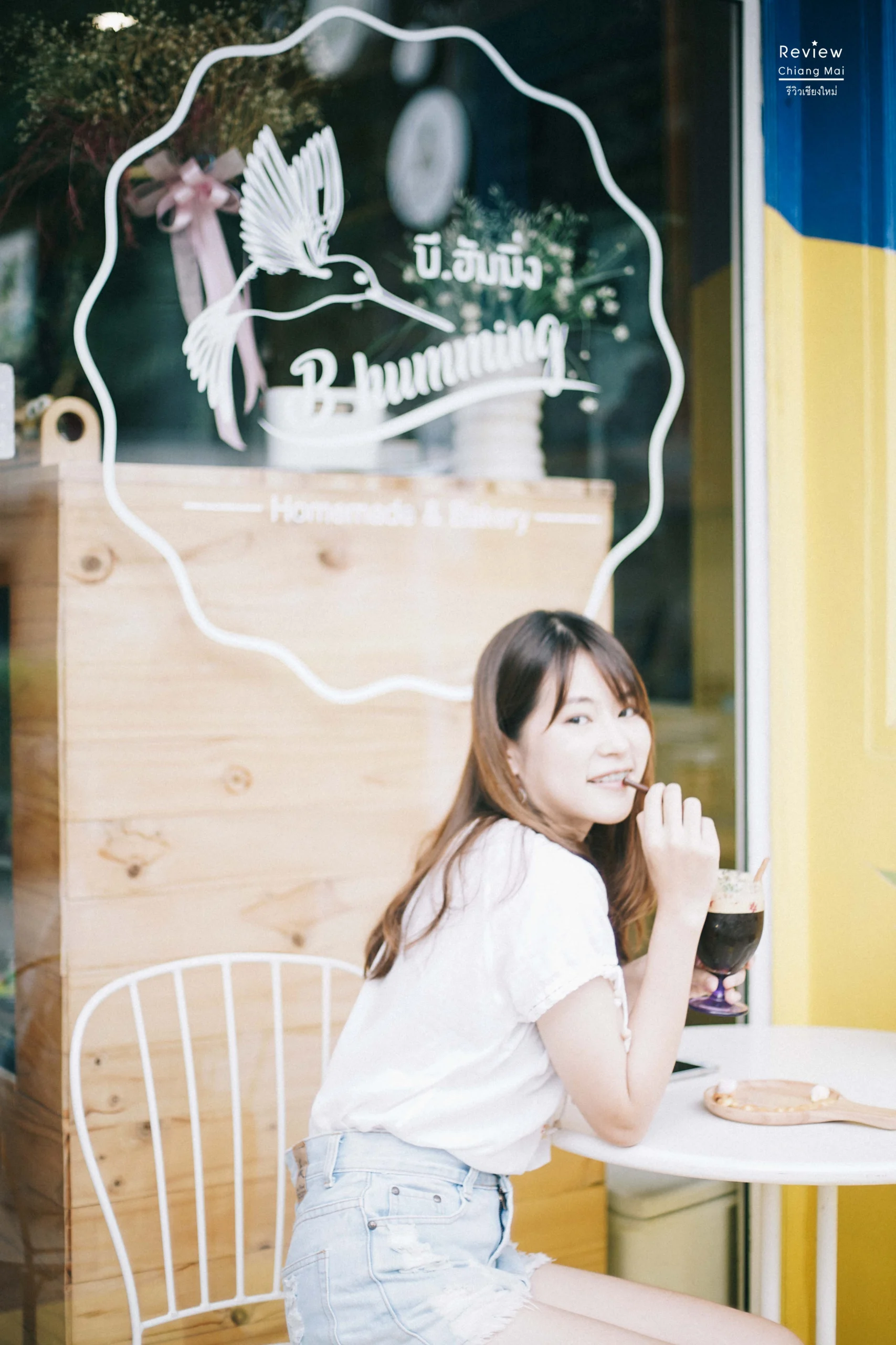 มันจะมีความรู้สึกหนึ่งคือการไม่อยากถ่ายภาพซ้ำมุมใคร แล้วเราจะไปเช็คอินที่ไหนให้แตกต่างหละ เดินดุ่ย ๆ บนถนนนิมมานฯ 17 นี่หละ (ร้านเปิดใหม่จ้า) สะดุดตากับสีฟ้าสดตัดกับสีเหลือง มีโต๊ะขาวเล็กๆหน้าร้าน ทั้งคนจีน ฝรั่งก็แวะมาถ่ายรูปกัน เลยอดสงสัยไม่ได้ว่าข้างในมันเป็นที่พักหรือเป็นคาเฟ่ (ในกระจกเขียนว่า B.humming) ตามมาดูกันเลย